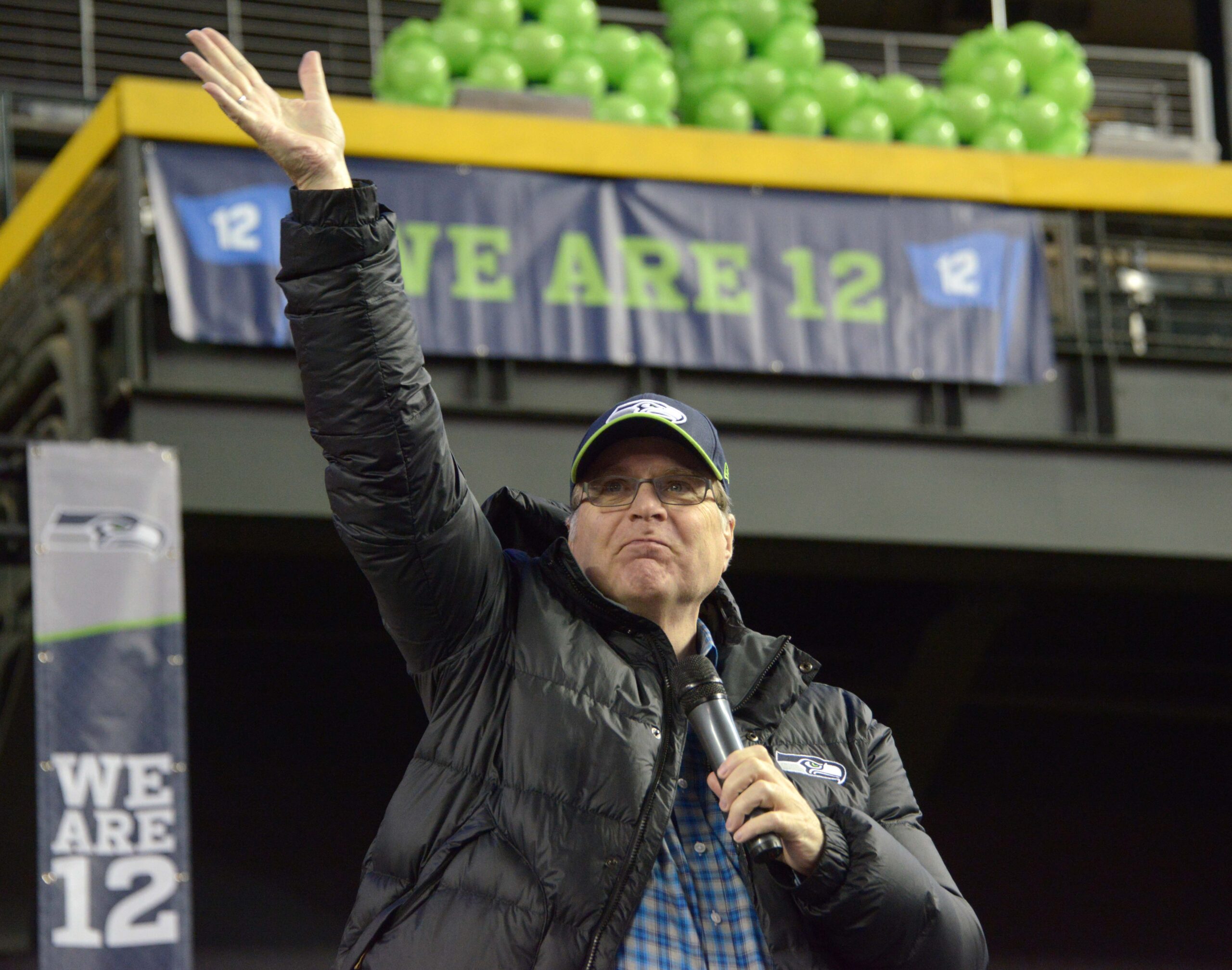 Jan 31, 2015; Phoenix, AZ, USA; Seattle Seahawks owner Paul Allen at the Seattle Seahawks 12Fest fan rally in the Desert at Chase Field prior to Super Bowl XLIX. Mandatory Credit: Kirby Lee-Imagn Images