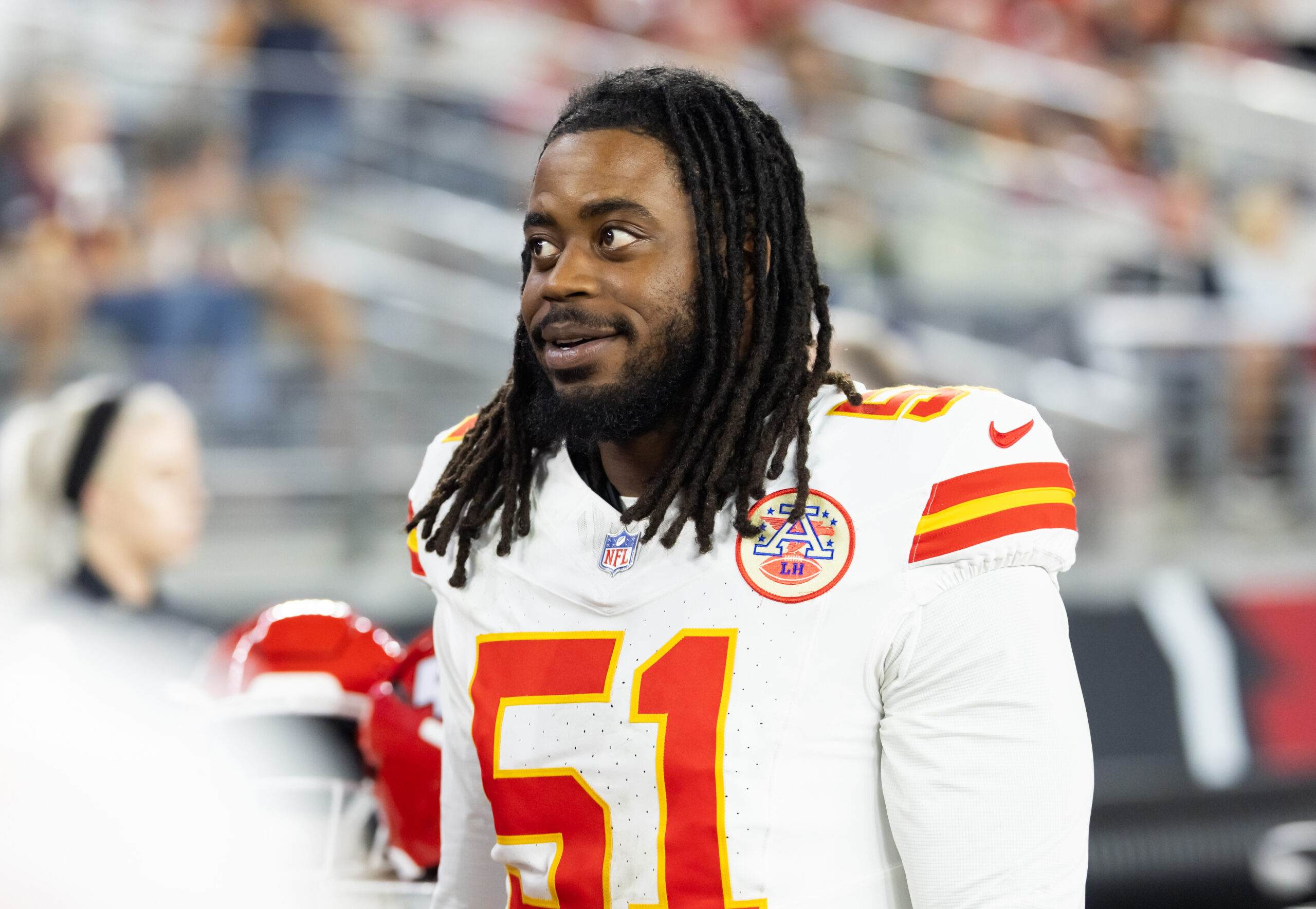 Aug 9, 2025; Glendale, Arizona, USA; Kansas City Chiefs defensive end Mike Danna (51) against the Arizona Cardinals during a preseason NFL game at State Farm Stadium. Mandatory Credit: Mark J. Rebilas-Imagn Images