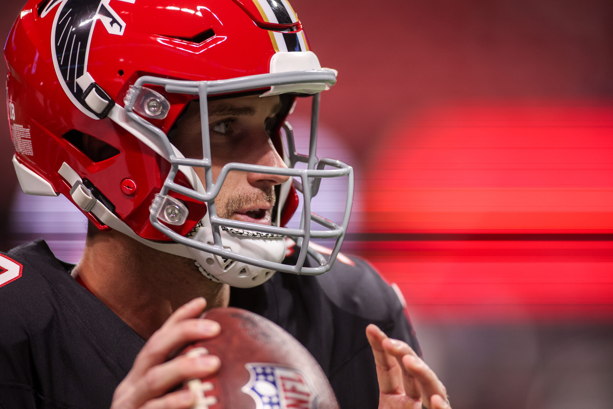 Dec 29, 2025; Atlanta, Georgia, USA; Atlanta Falcons quarterback Kirk Cousins (18) warms up before a game against the Los Angeles Rams at Mercedes-Benz Stadium. Mandatory Credit: Brett Davis-Imagn Images