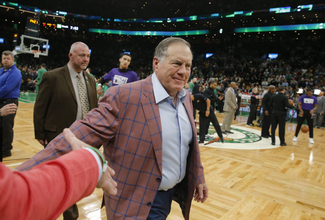 Feb 7, 2019; Boston, MA, USA; New England Patriots head coach Bill Belichick walks to his seat before the start of a game between the Boston Celtics and Los Angeles Lakers at TD Garden. Mandatory Credit: David Butler II-USA TODAY Sports