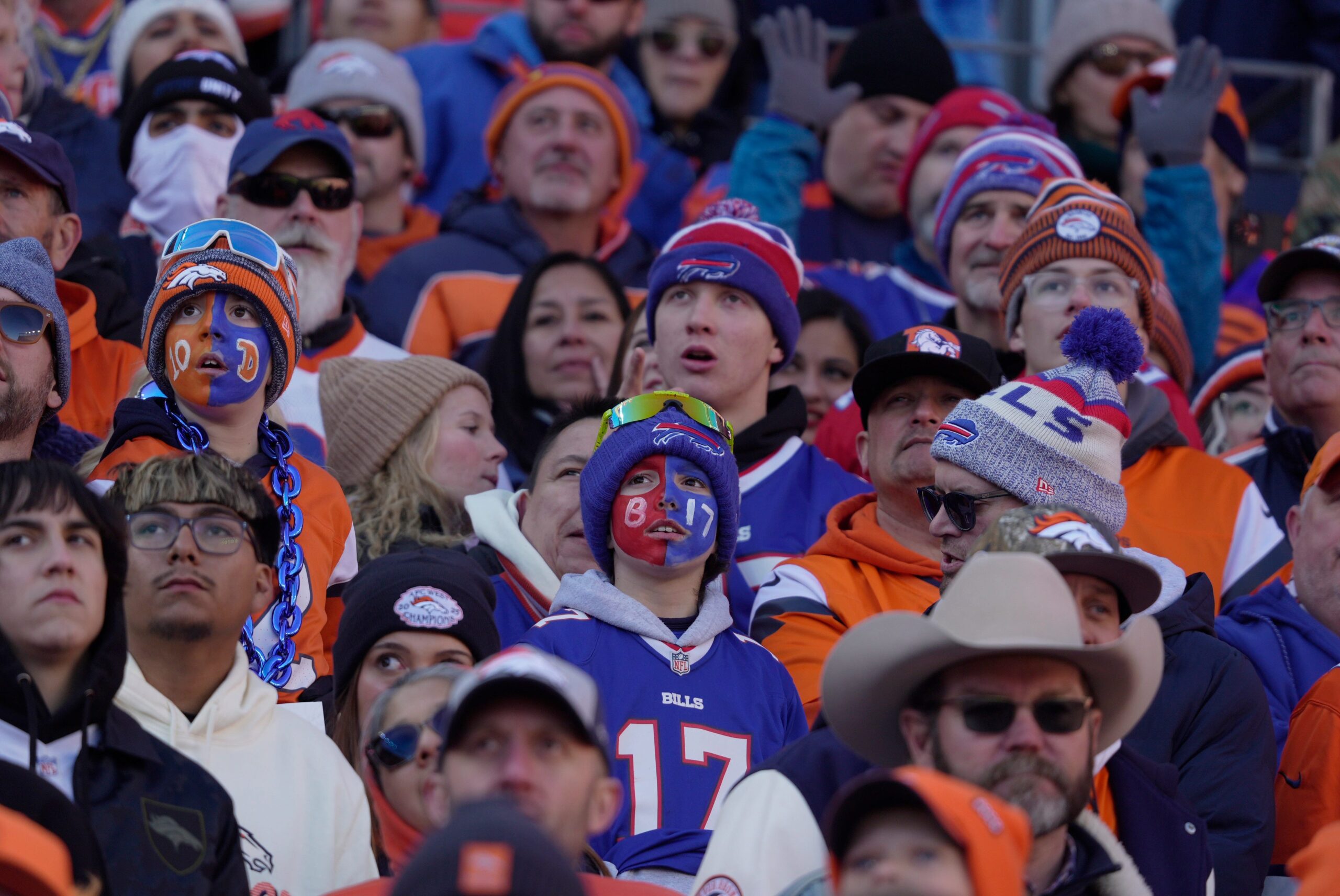 Bills fans were scattered throughout the stadium during first half action at Empower FIeld at Mile High in Denver, Colorado on Jan. 17, 2026. Mandatory Credit: Tina MacIntyre-Yee/Democrat and Chronicle-Imagn Images