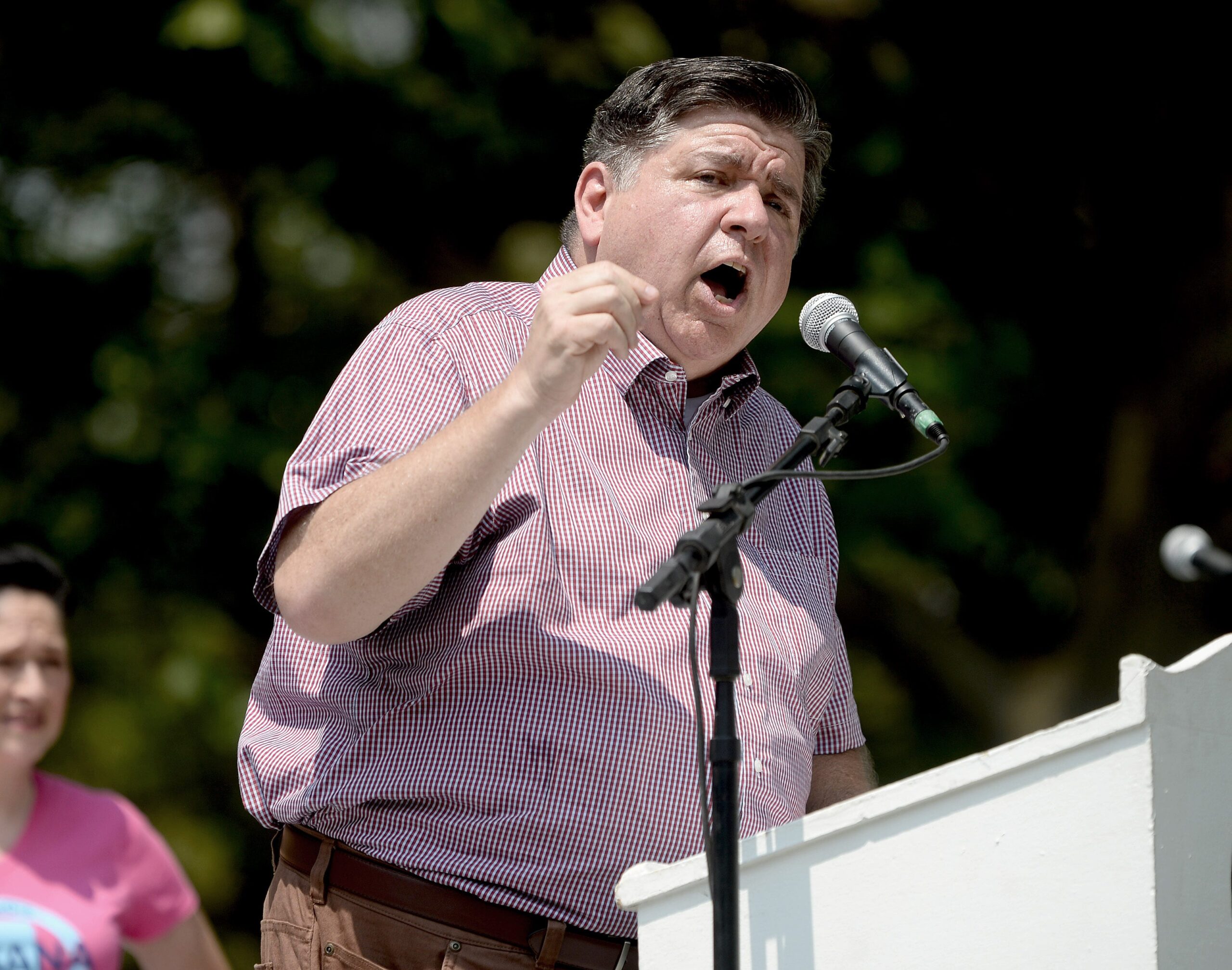 Gov. JB Pritzker speaks during Governor’s Day at the Illinois State Fair on Wednesday, Aug. 13, 2025.