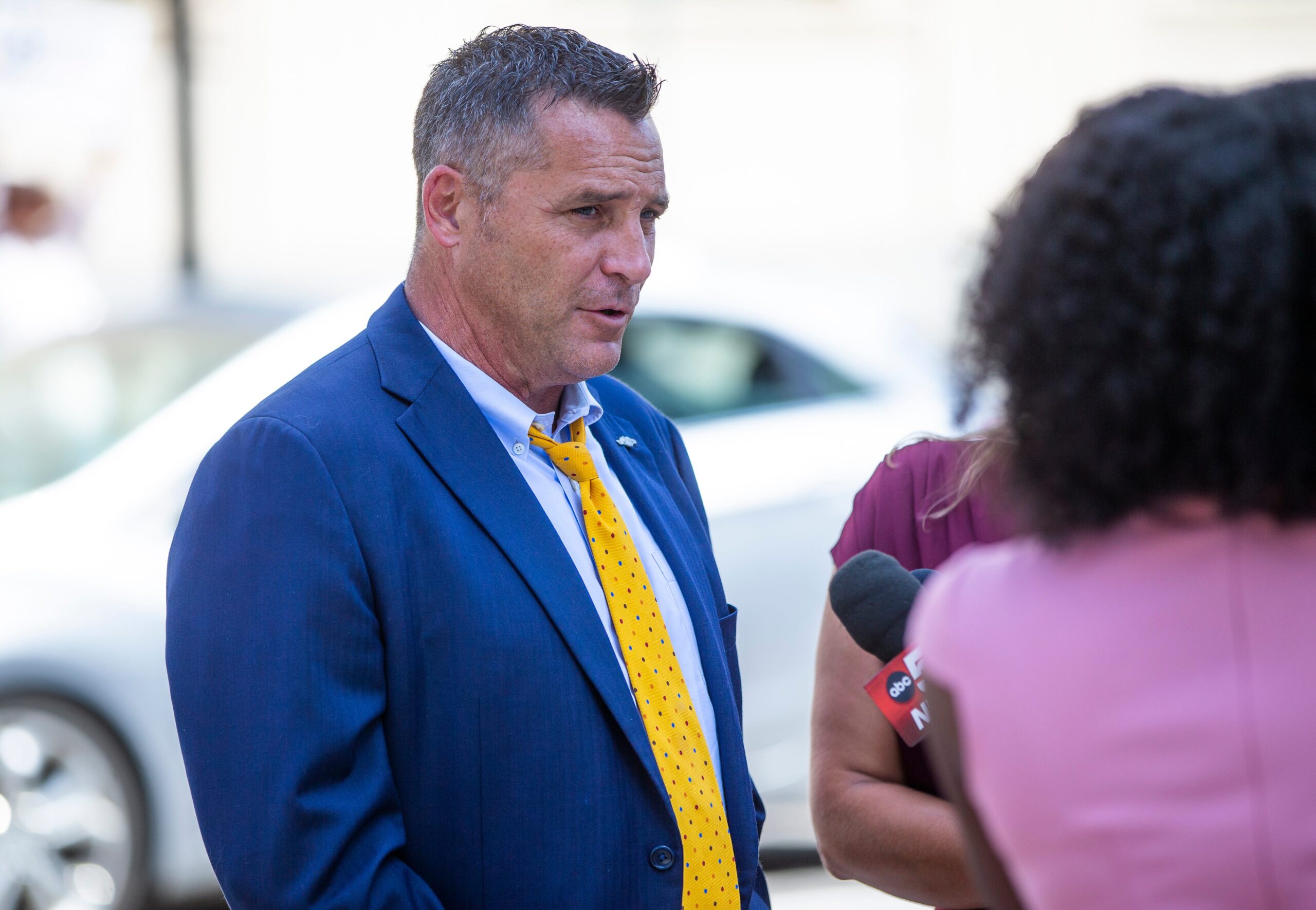 Current Hammond Mayor and democratic U.S. senate candidate Thomas McDermott Jr. gives an interview at an abortion rights rally Wednesday, June 29, 2022 at the Robert A. Grant Federal Building & U.S. Courthouse in South Bend. Abortion Rights Rally