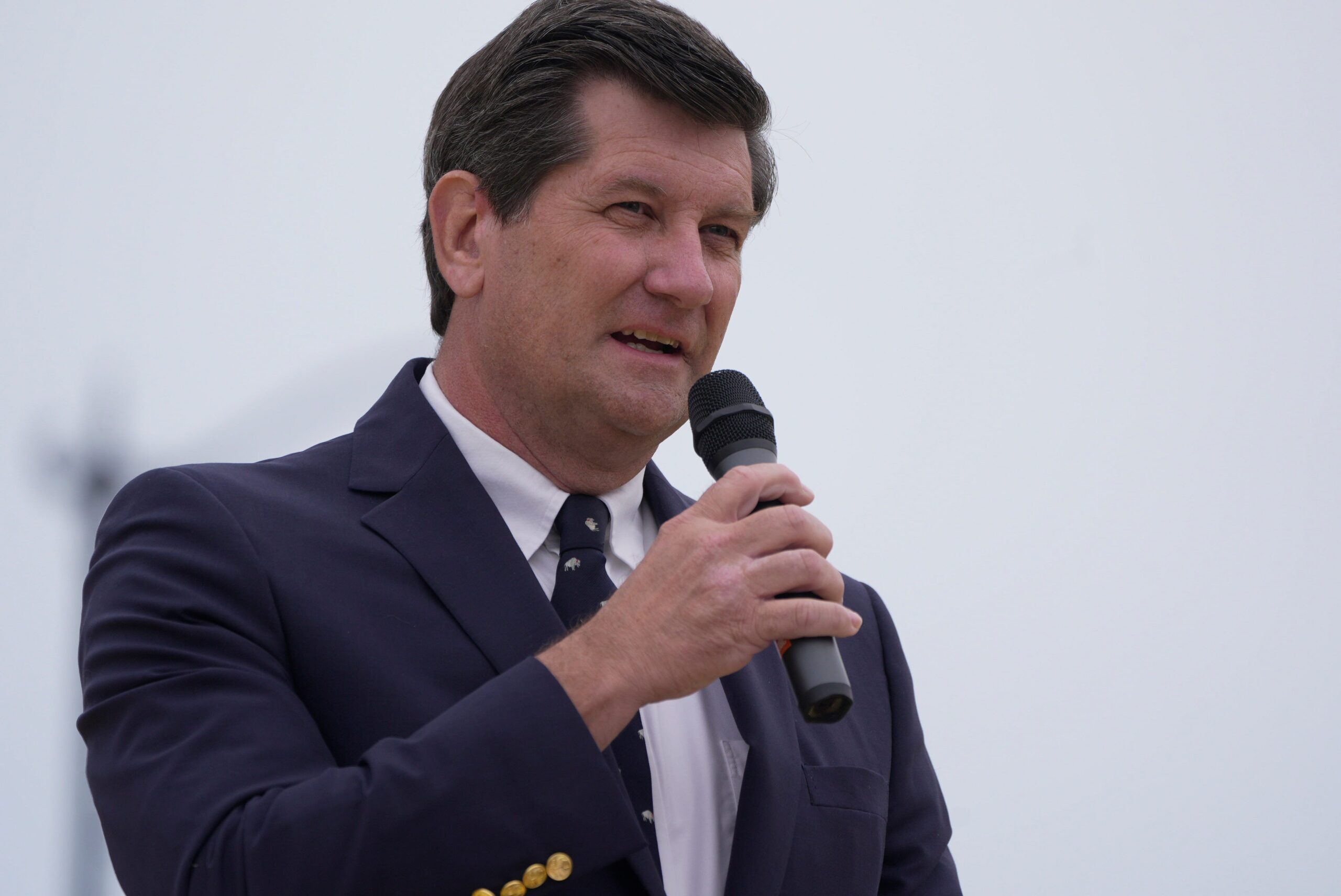 Erie County Executive Mark Poloncarz speaks before the Erie Canal Boat Seneca Chief leaves Buffalo to New York City on Sept. 24, 2025 to celebrate the 200th anniversary of he Erie Canal’s opening
