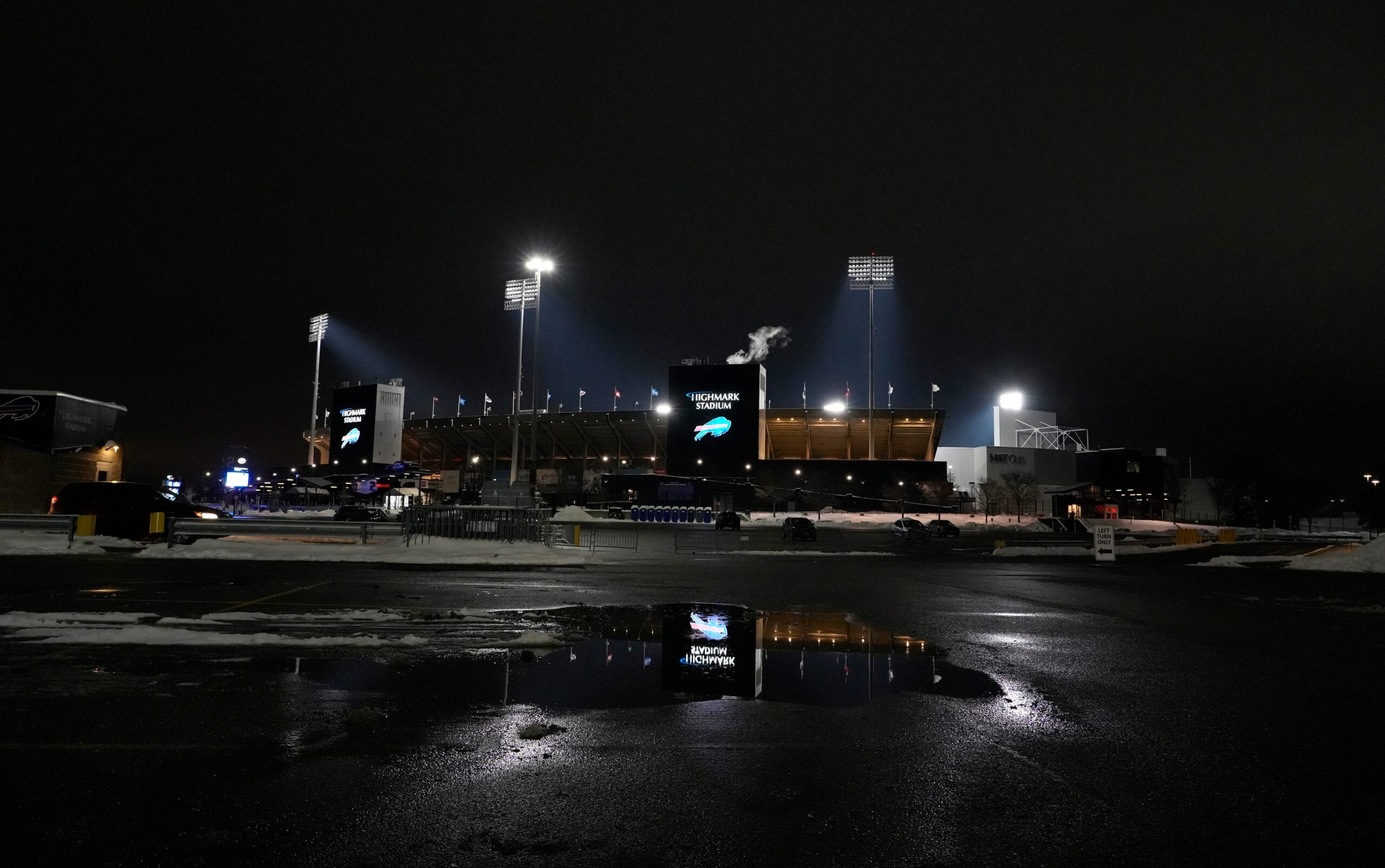 A final look outside Highmark Stadium hours after the Bills win over the Jets in their last regular season game at Highmark Stadium in Orchard Park Sunday, Jan. 4, 2026-Imagn Images