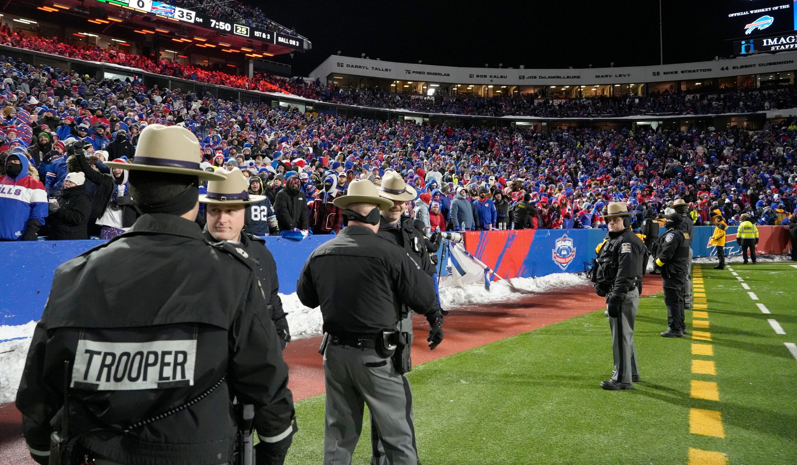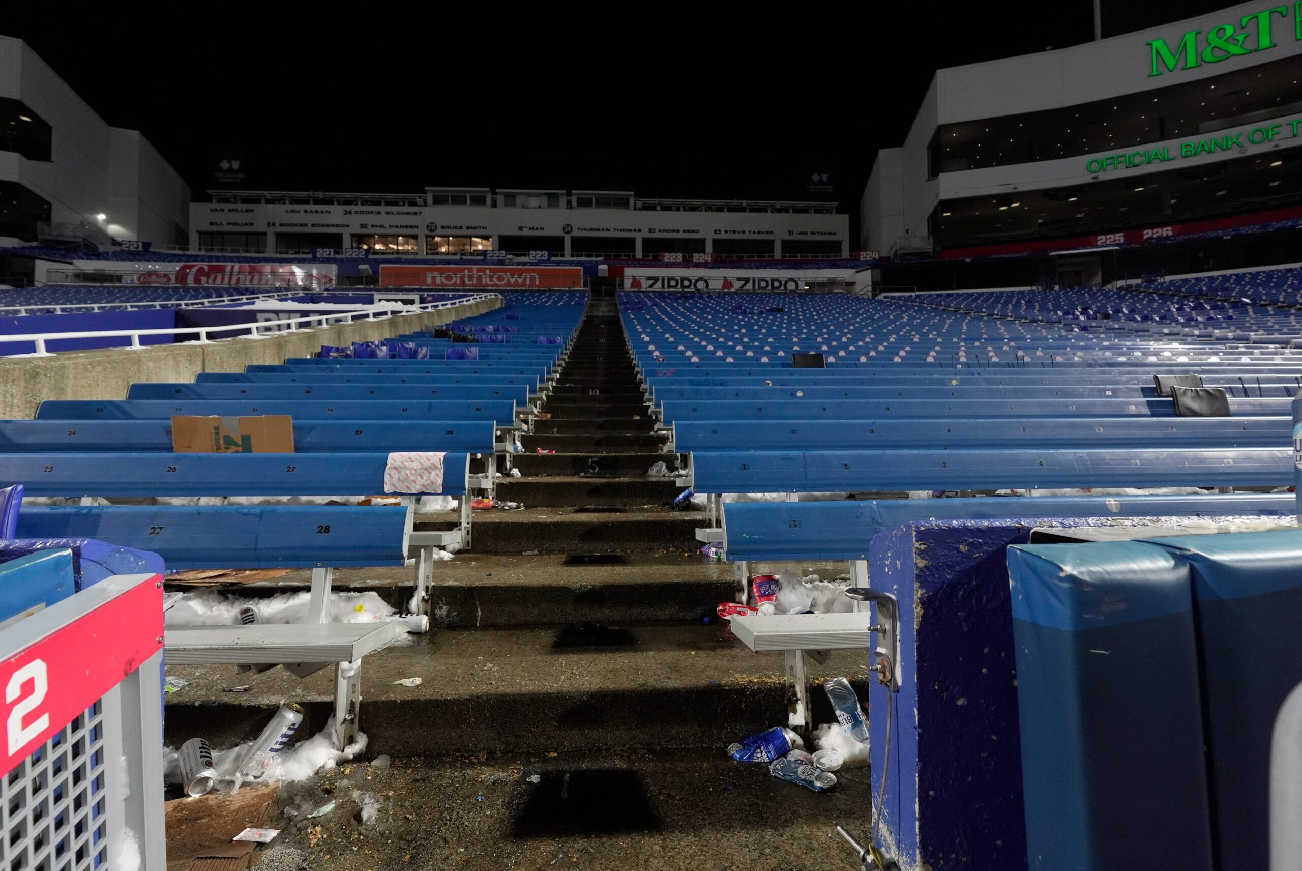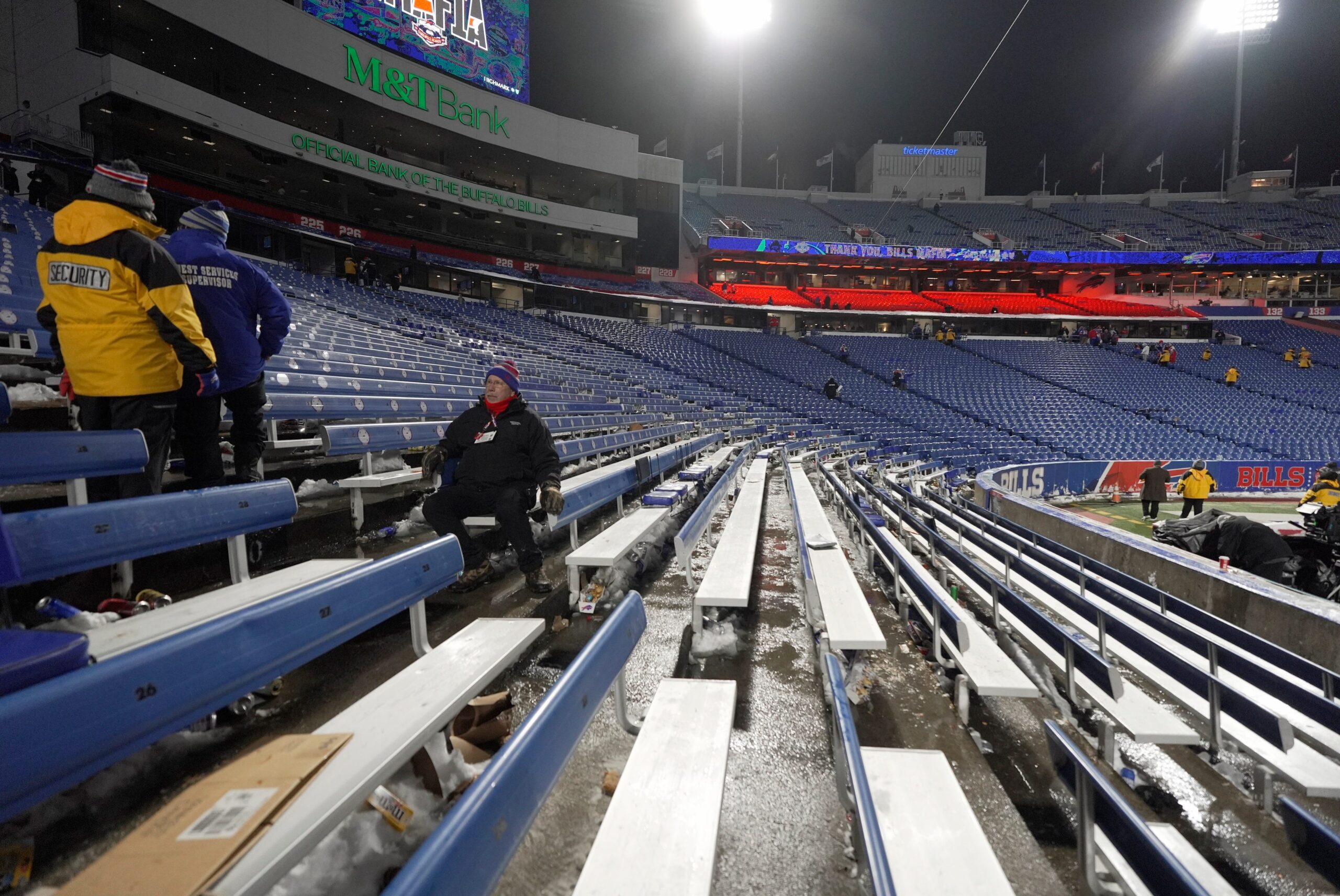 Security waits until everyone leaves the stadium after the Bills last home game at Highmark Stadium in Orchard Park on Jan. 4, 2026.-Imagn Images
