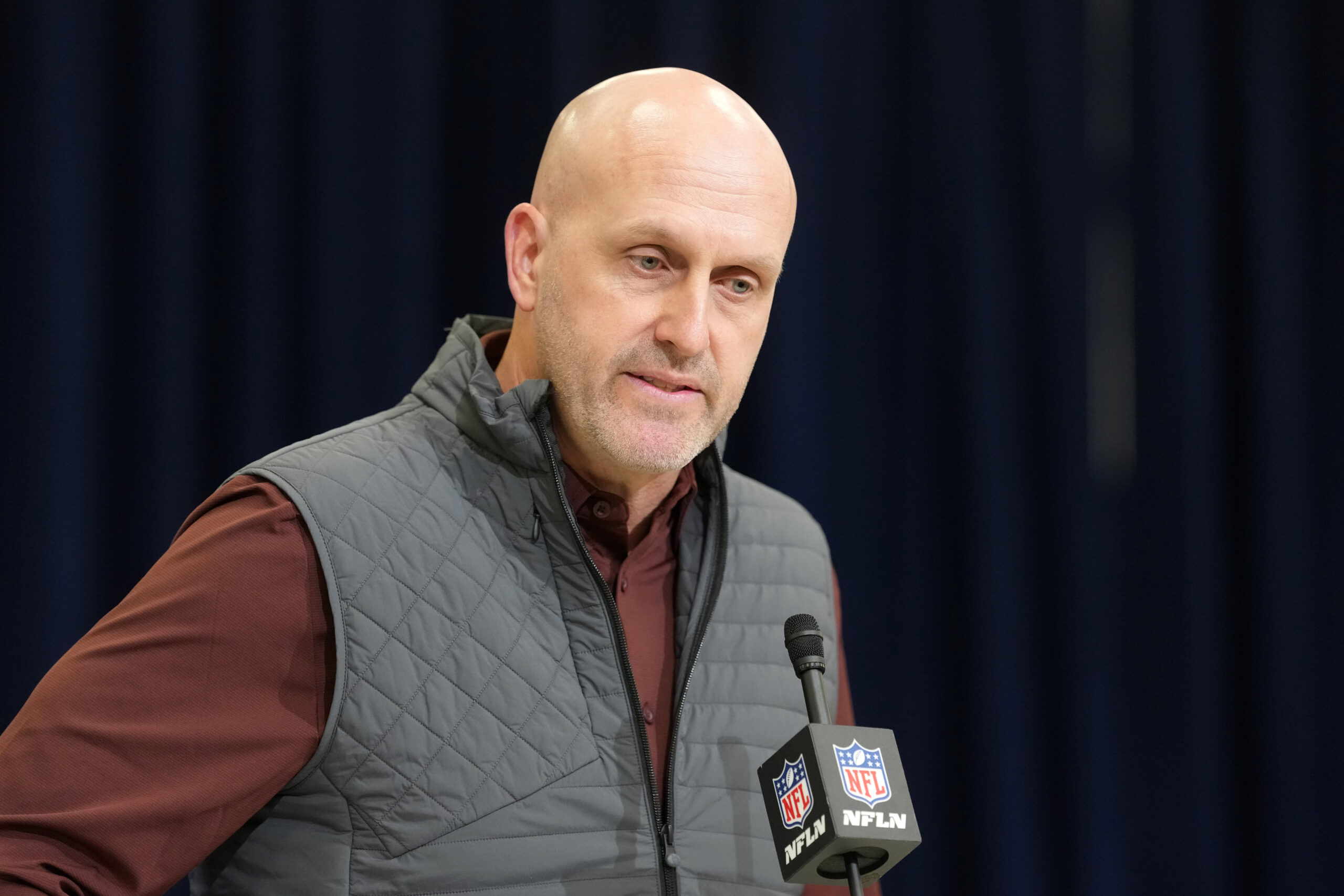 Feb 24, 2026; Indianapolis, IN, USA; Arizona Cardinals general manager Monti Ossenfort speaks at the NFL Scouting Combine at the Indiana Convention Center. Mandatory Credit: Kirby Lee-Imagn Images