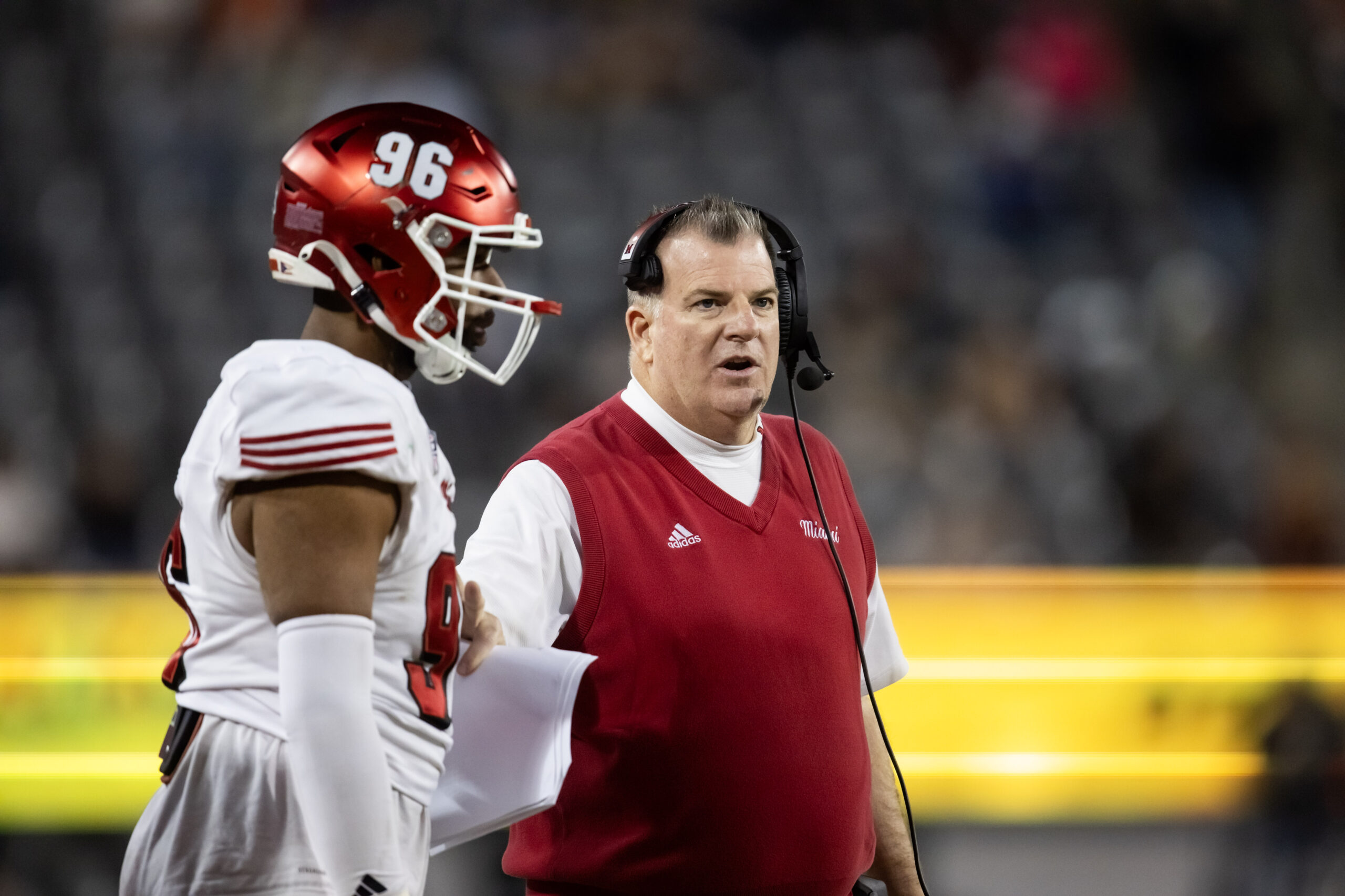 Dec 28, 2024; Tucson, AZ, USA; Miami (OH) RedHawks head coach Chuck Martin against the Colorado State Rams during the Snoop Dogg Arizona Bowl at Arizona Stadium. Mandatory Credit: Mark J. Rebilas-Imagn Images