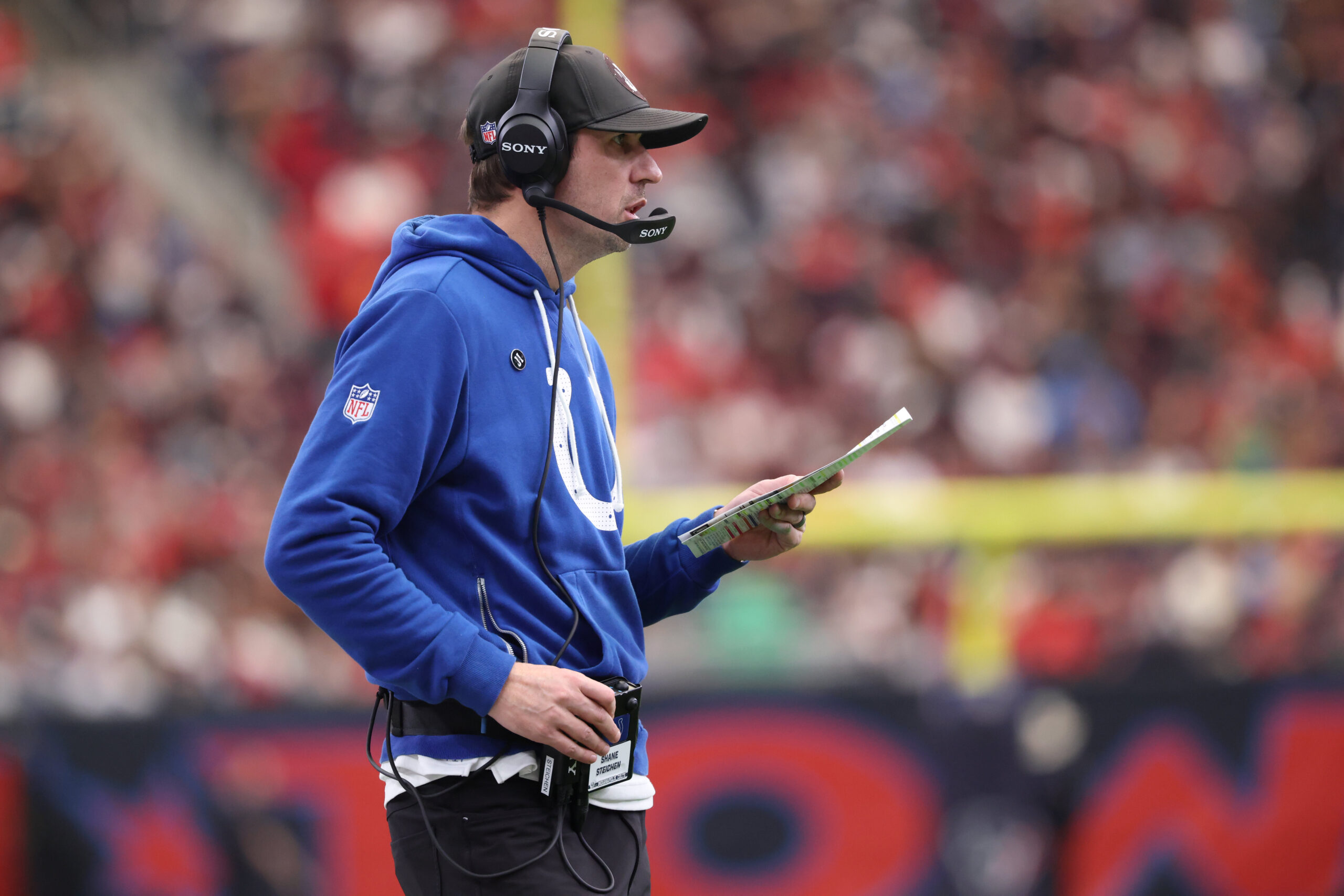 Jan 4, 2026; Houston, Texas, USA; Indianapolis Colts head coach Shane Steichen on the sidelines against the Houston Texans during the second half at NRG Stadium. Mandatory Credit: Troy Taormina-Imagn Images