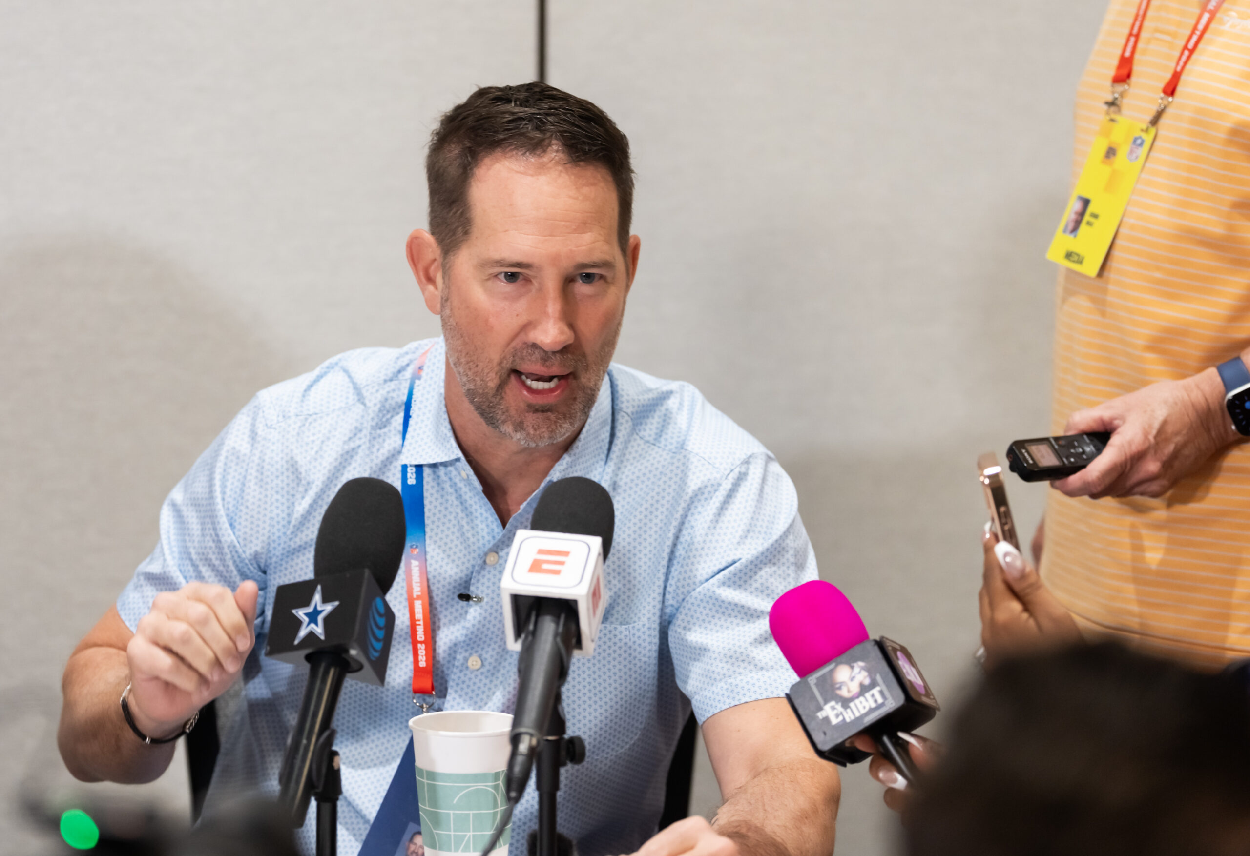 Mar 30, 2026; Phoenix, AZ, USA; Dallas Cowboys head coach Brian Schottenheimer during the 2026 NFL Annual League Meeting at the Arizona Biltmore. Mandatory Credit: Mark J. Rebilas-Imagn Images