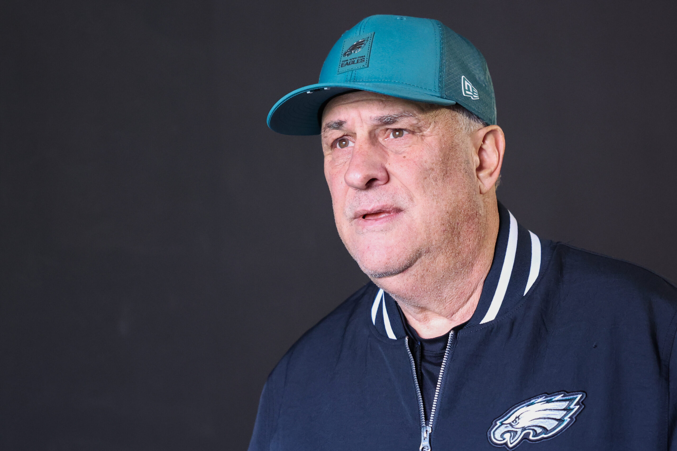 Dec 14, 2025; Philadelphia, Pennsylvania, USA; Philadelphia Eagles defensive coordinator Vic Fangio walks onto the field before the game against the Las Vegas Raiders at Lincoln Financial Field. Mandatory Credit: Bill Streicher-Imagn Images