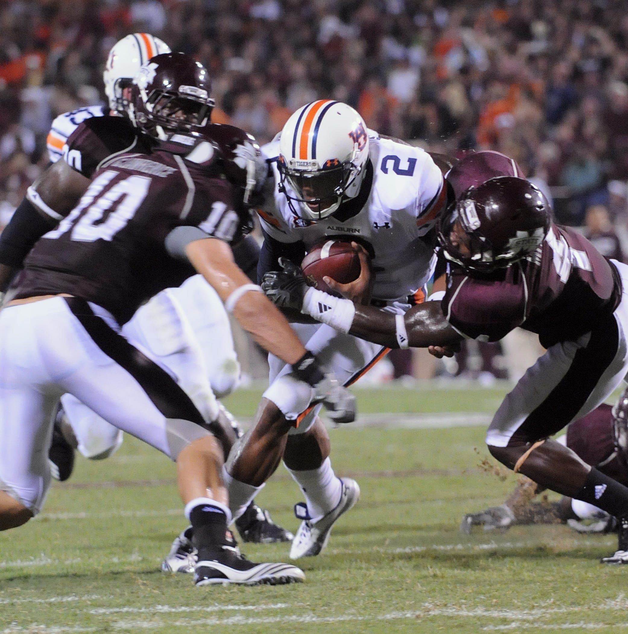 Auburn quarterback Cam Newton carries the ball against Mississippi State Thursday, Sept 9, 2010 in Starkville, Miss. (Montgomery Advertiser, Julie Bennett)-Imagn Images