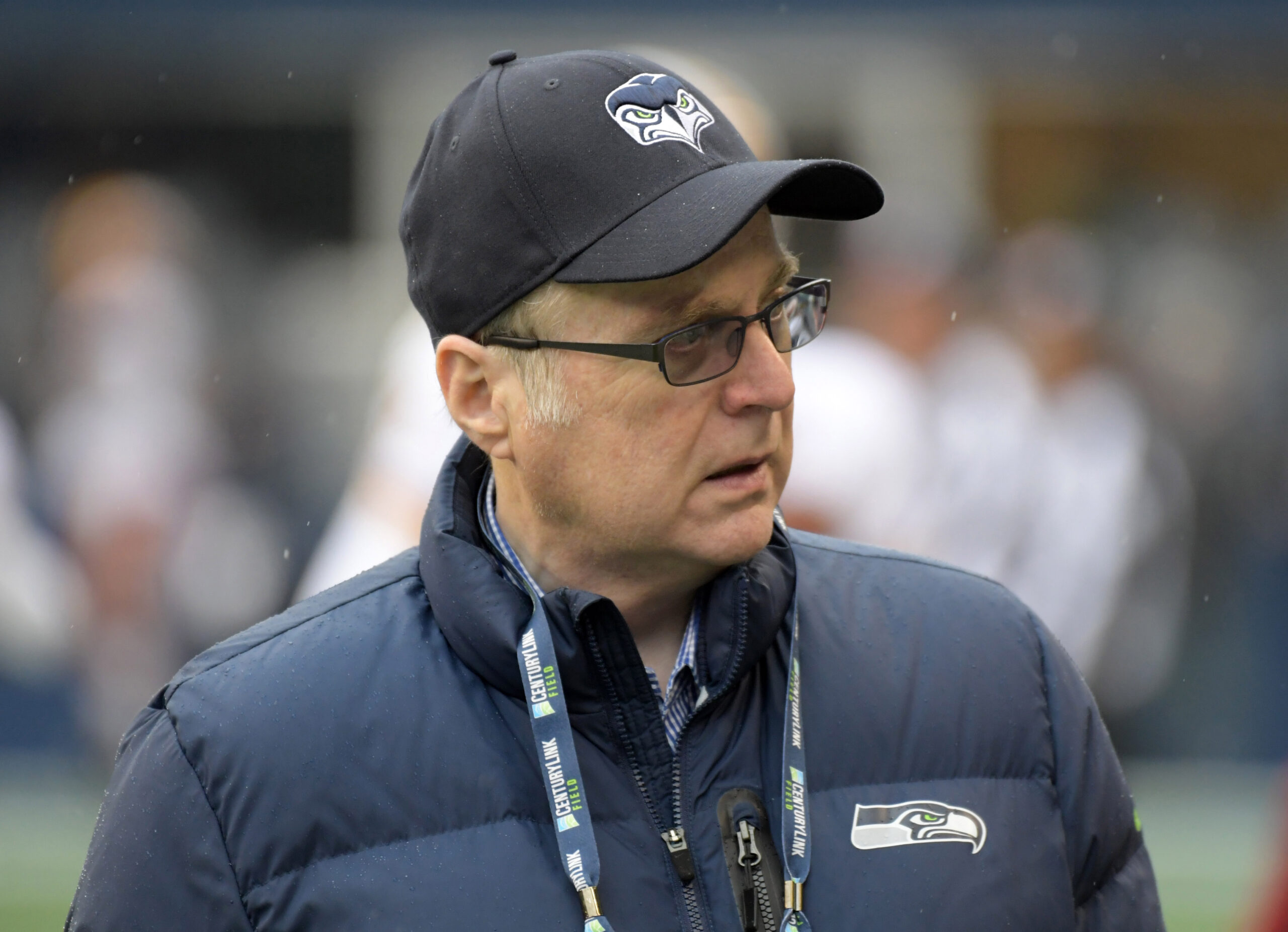 Nov 5, 2017; Seattle, WA, USA; Seattle Seahawks owner Paul Allen reacts during an NFL football game against the Washington Redskins at CenturyLink Field. Mandatory Credit: Kirby Lee-Imagn Images