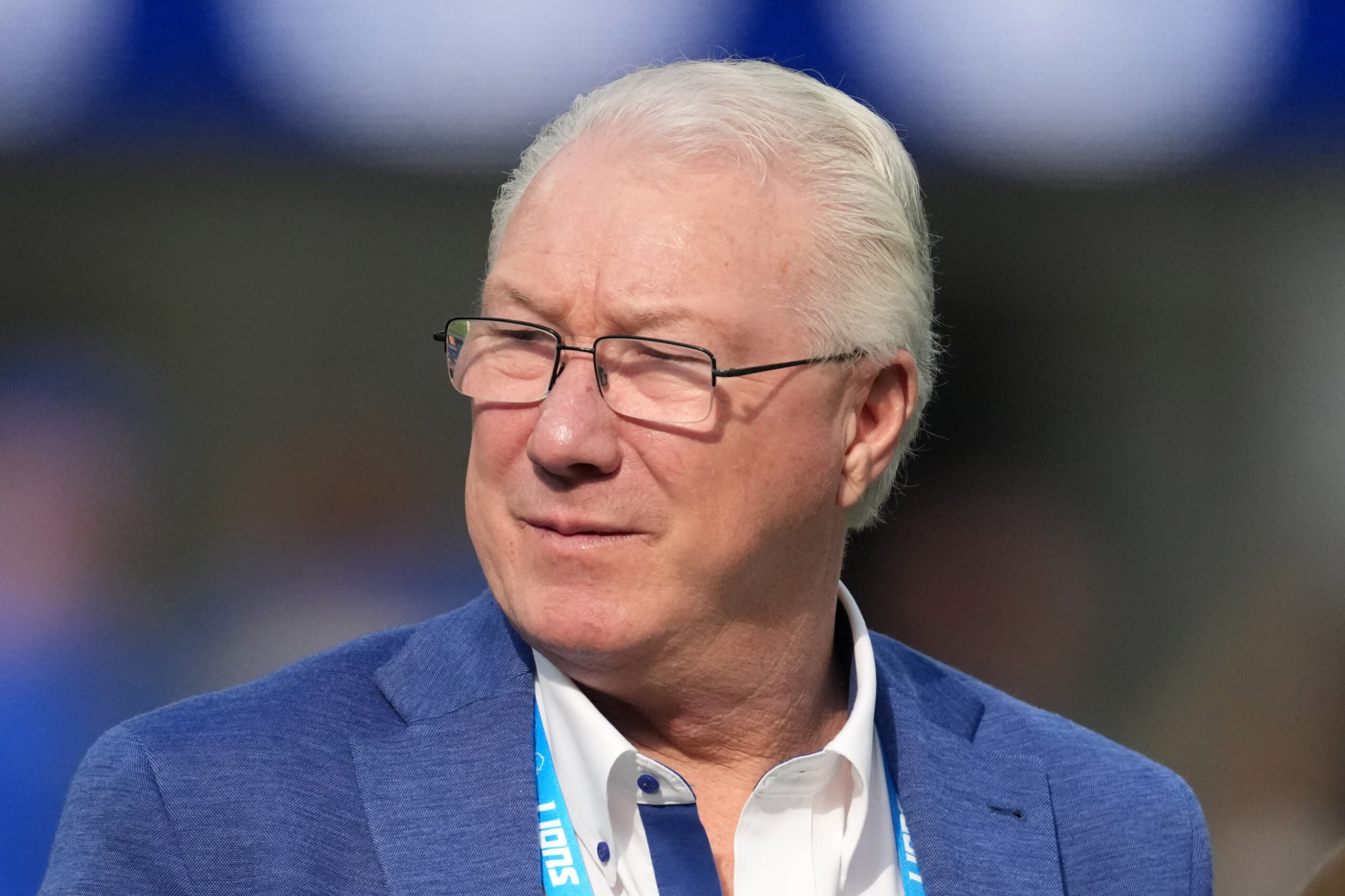 Dec 14, 2025; Inglewood, California, USA; Detroit Lions president Rod Wood watches during the game against the Los Angeles Rams at SoFi Stadium. Mandatory Credit: Kirby Lee-Imagn Images