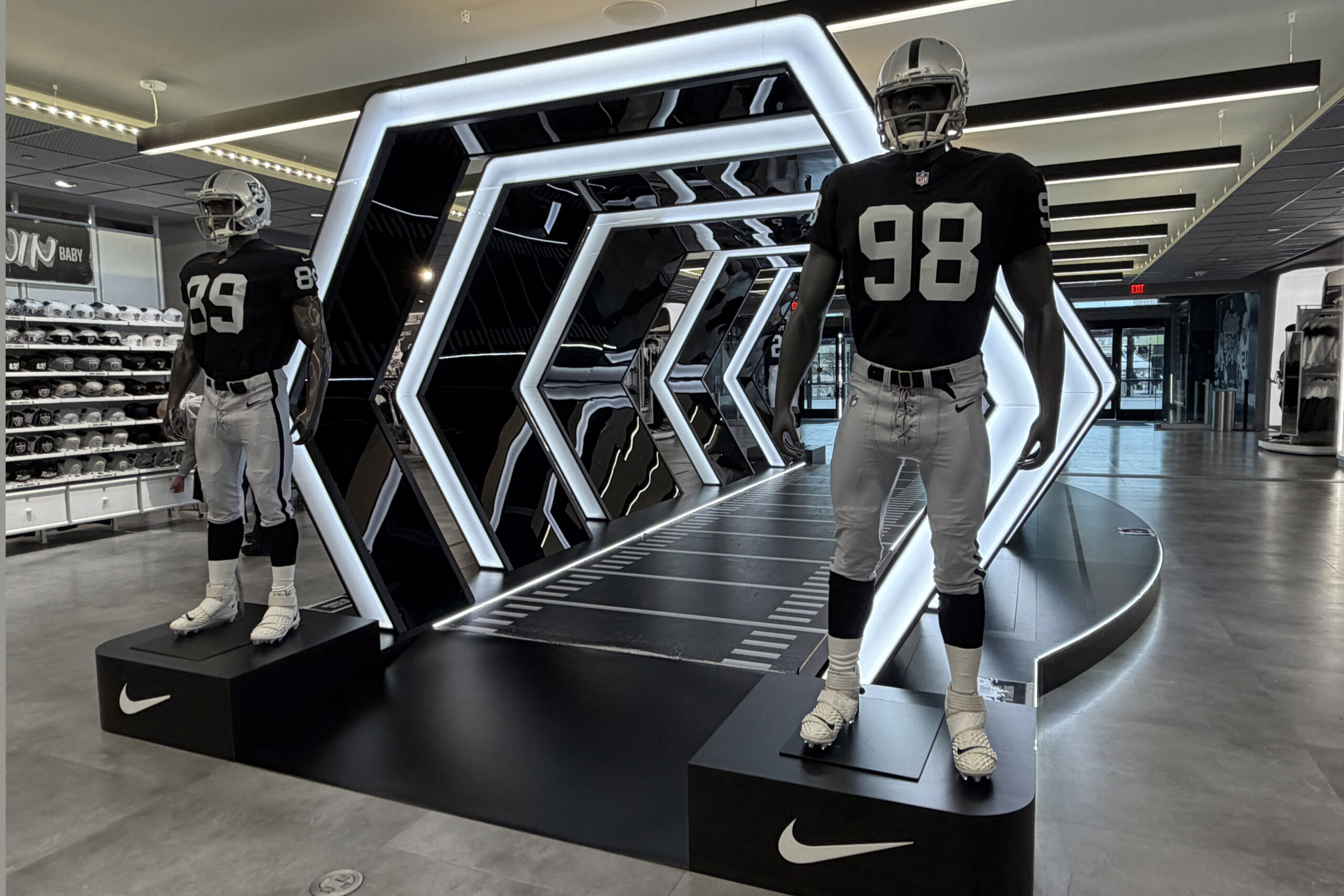 Feb 10, 2026; Las Vegas, NV, USA; The jerseys of Las Vegas Raiders tight end Brock Bowers (89) and defensive end Maxx Crosby (98) at the Raider Image store at Allegiant Stadium. Mandatory Credit: Kirby Lee-Imagn Images
