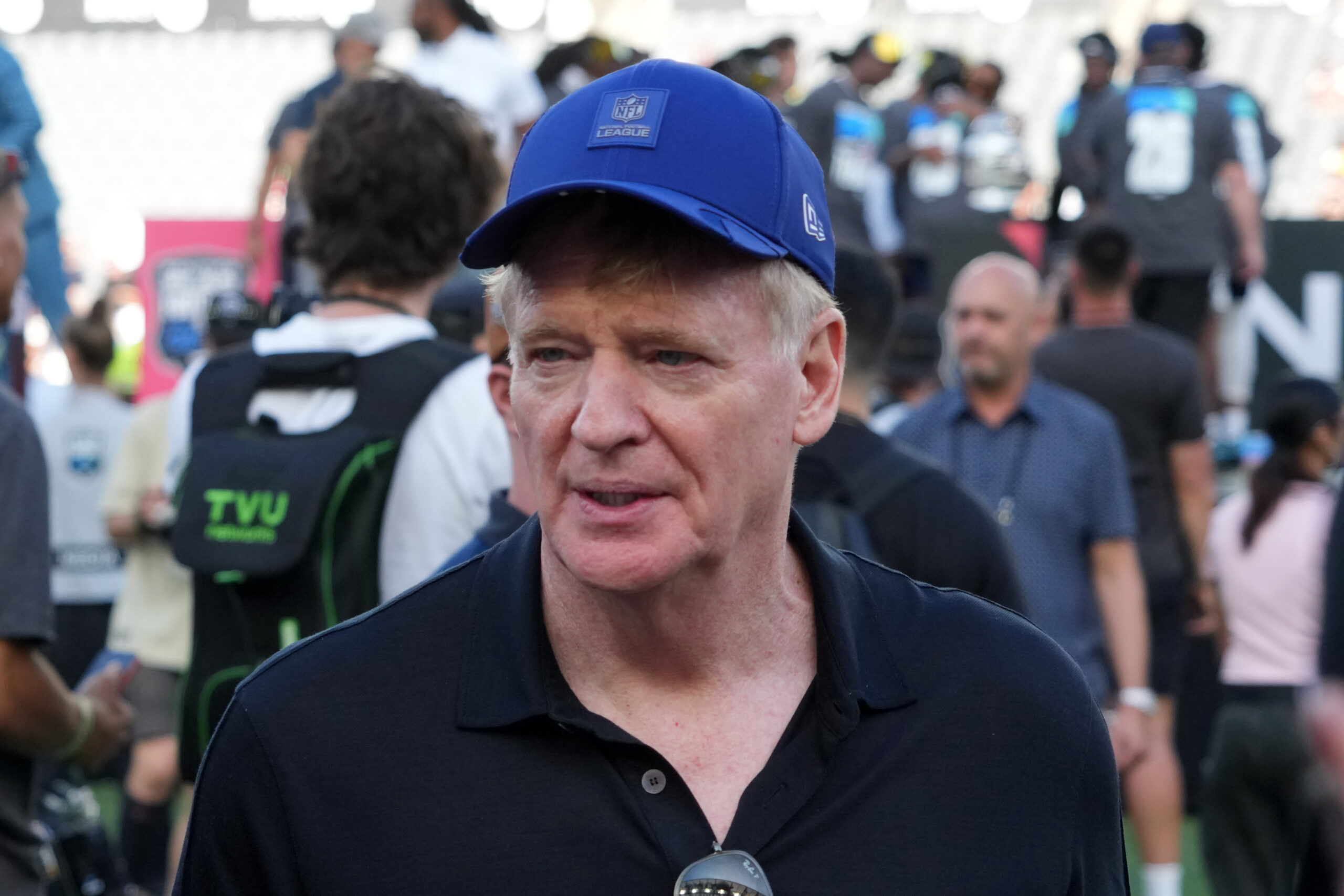 Mar 21, 2026; Los Angeles, CA, USA; NFL commissioner Roger Goodell attends the Fanatics Flag Football Classic at BMO stadium. Mandatory Credit: Kirby Lee-Imagn Images
