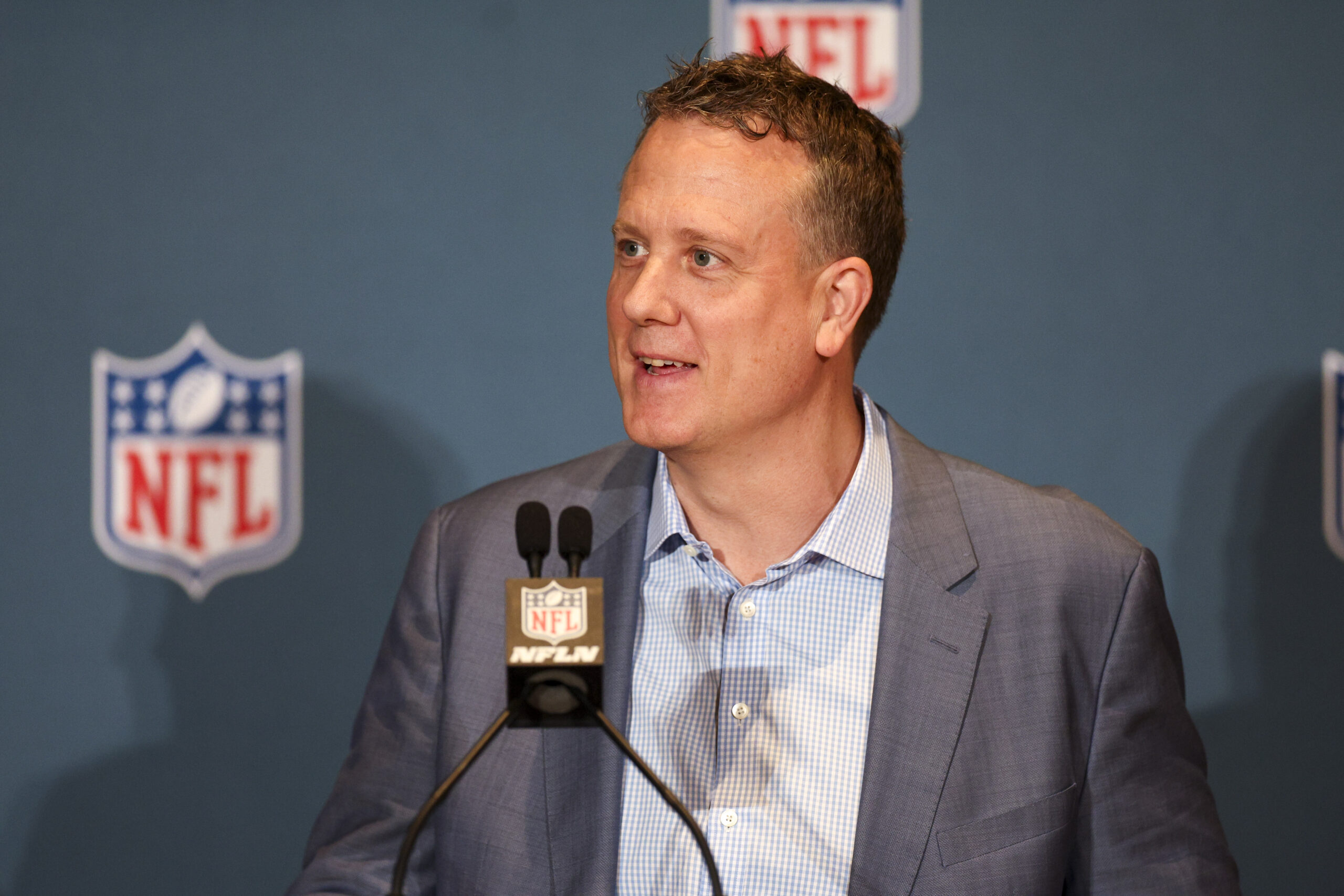 Mar 26, 2024; Orlando, FL, USA; NFL executive vice president of media distribution Hans Schroeder speaks to media during the annual league meetings at the JW Marriott. Mandatory Credit: Nathan Ray Seebeck-Imagn Images