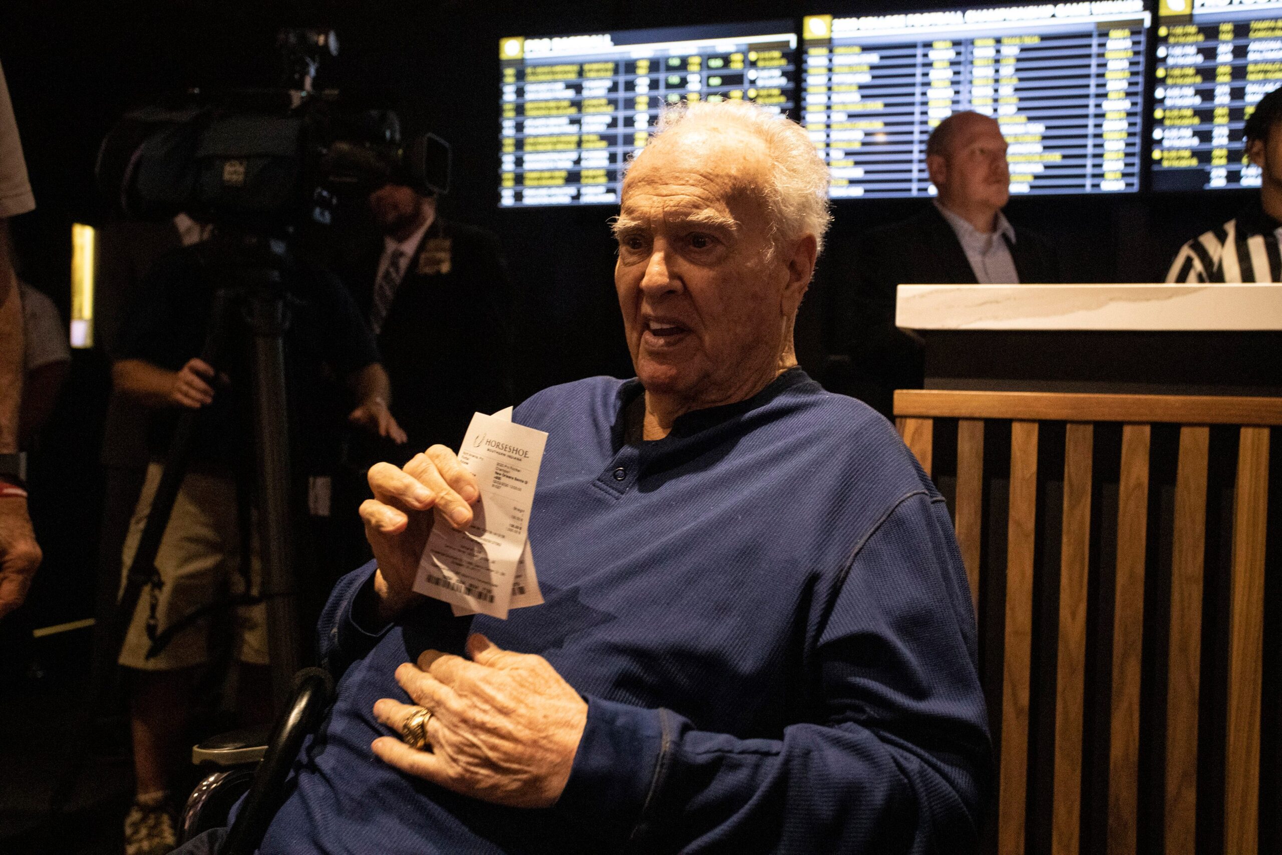 NFL Hall of Famer Paul Hornung was on hand to place the first bet at the new sports book service at Horseshoe Casino on Thursday afternoon. He placed a bet on the New Orleans Saints to win the Super Bowl. 9/12/19 Paulhornung Pearl 01