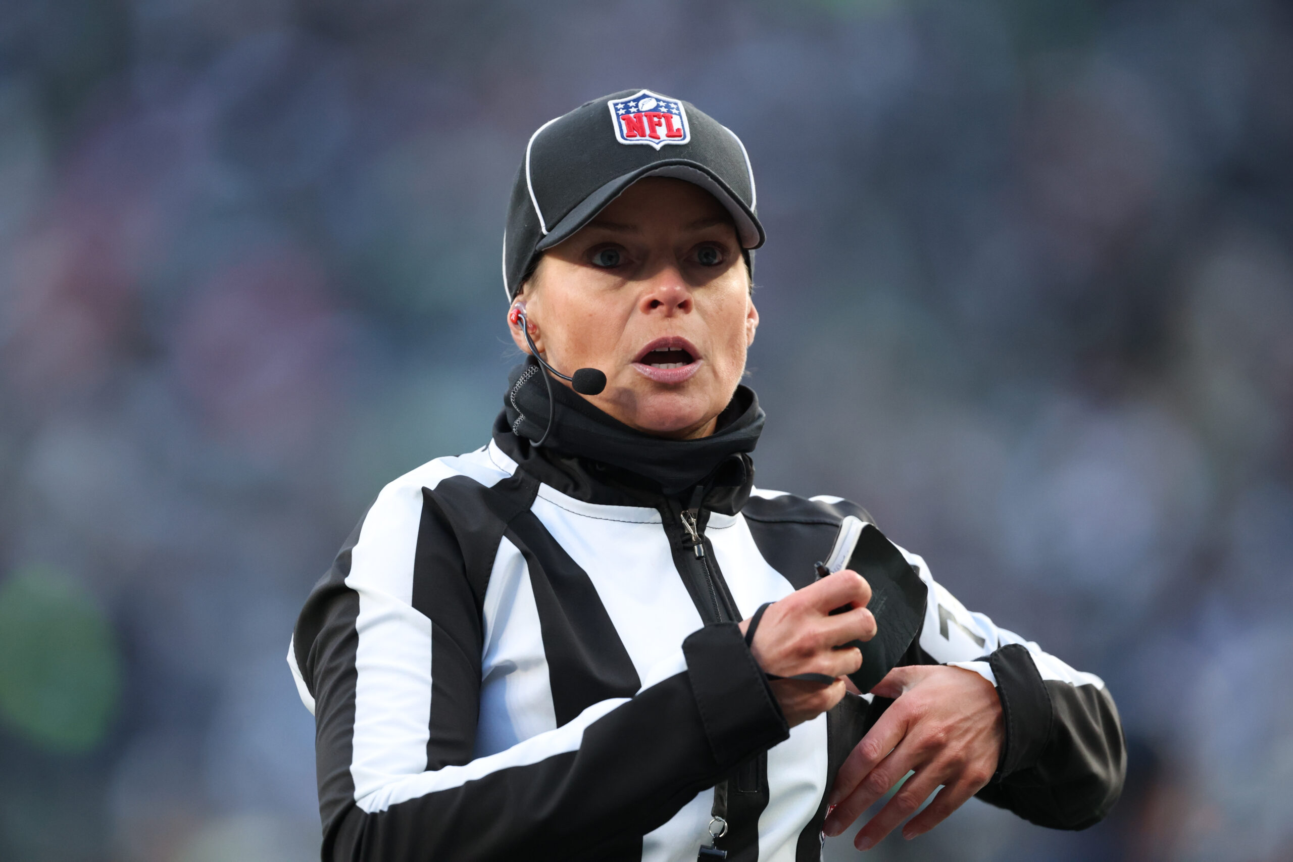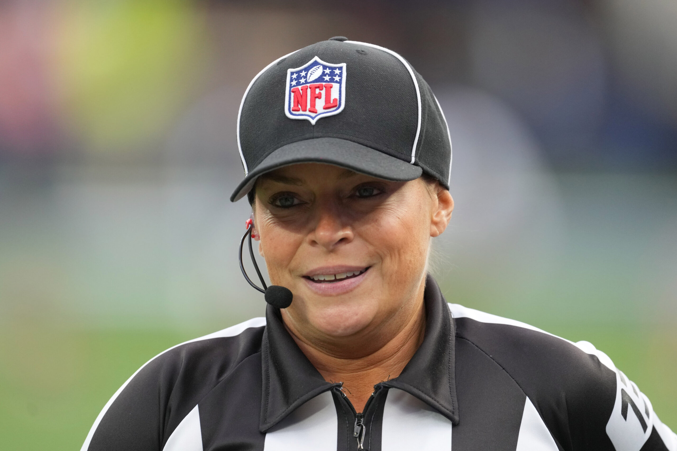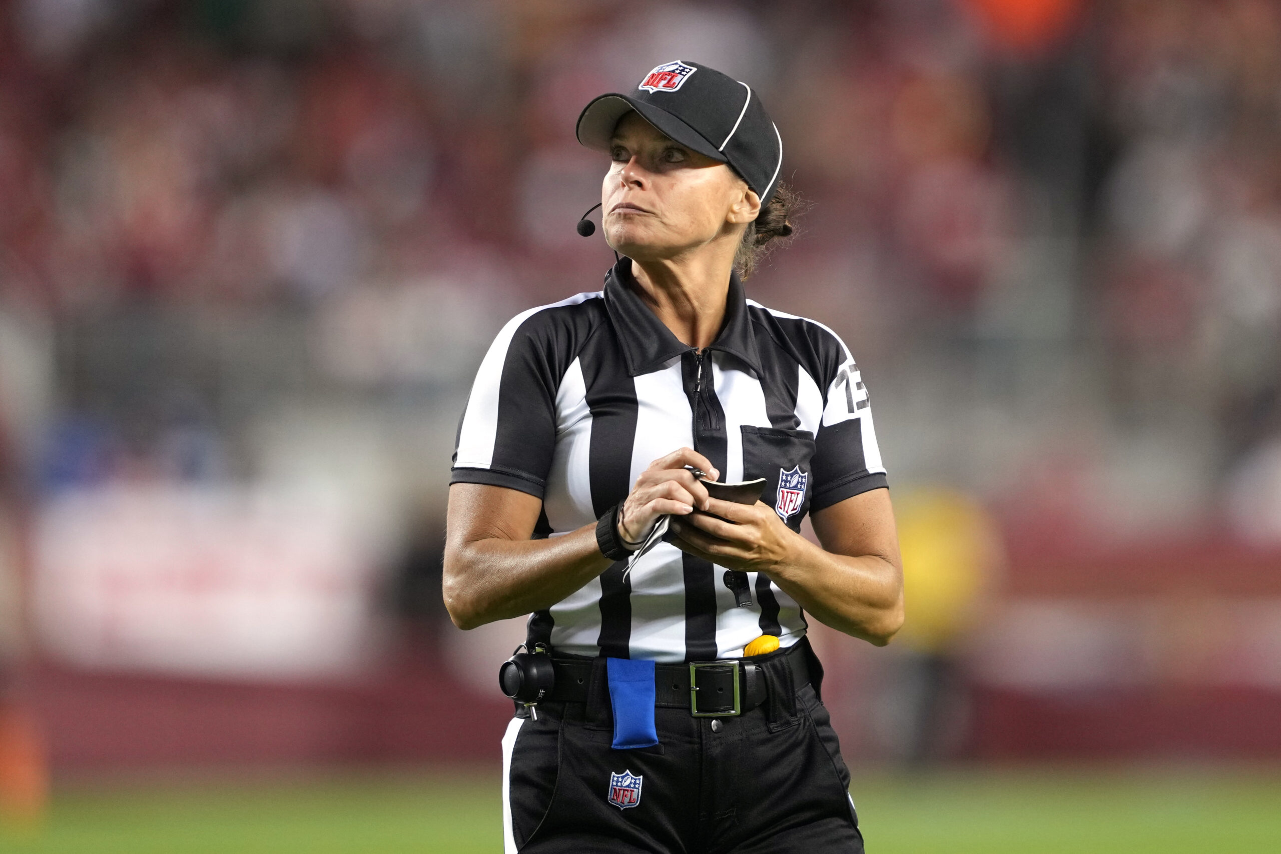Oct 30, 2022; Inglewood, California, USA; NFL referee Robin DeLorenzo during an NFL game between the Los Angeles Rams and San Francisco 49ers at SoFi Stadium. Mandatory Credit: Robert Hanashiro-Imagn Images
