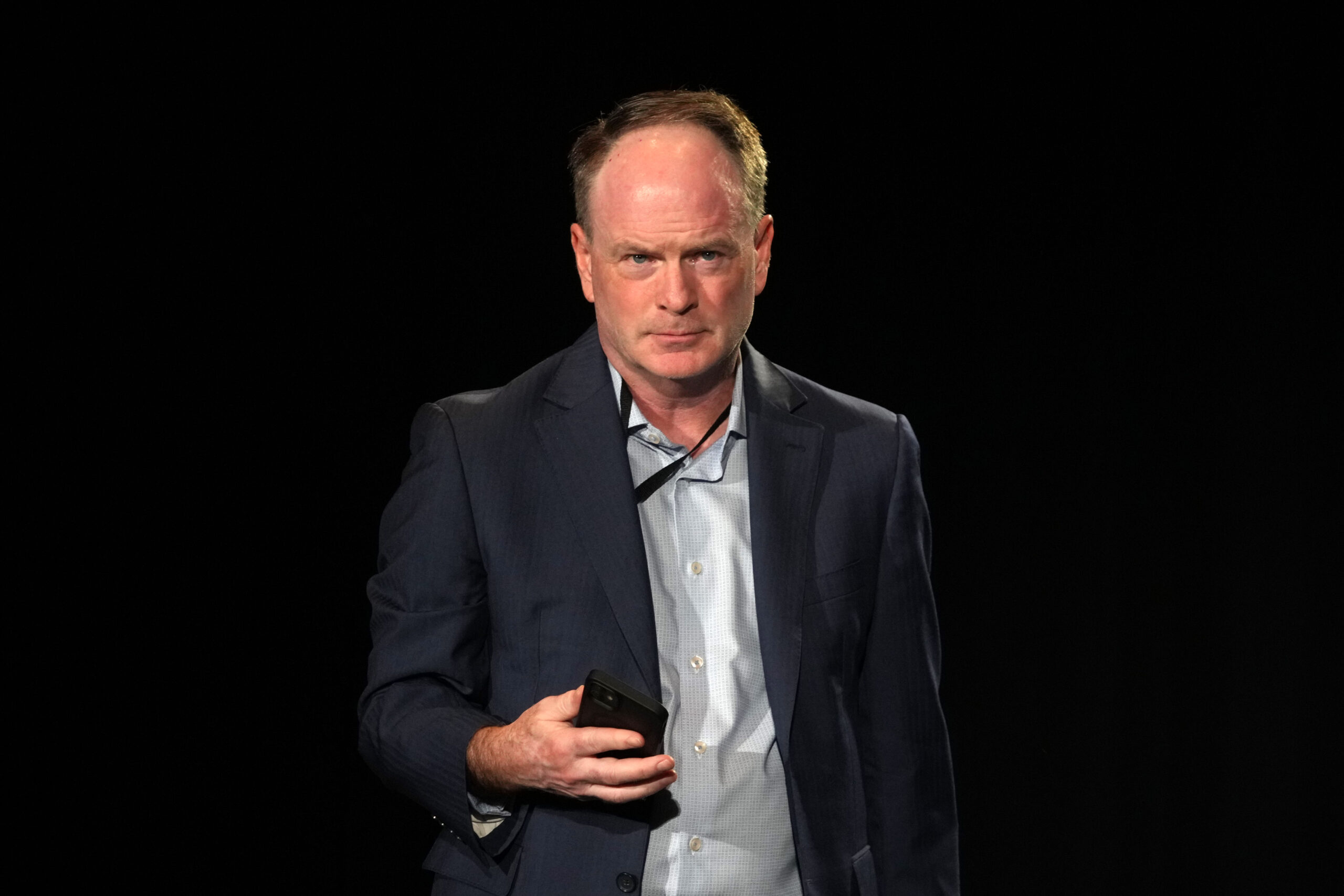 Feb 5, 2025; New Orleans, LA, USA; NFL vice president of communications Brian McCarthy moderates a press conference to announce the Los Angeles Rams as the host team for the 2026 NFL International game in Melbourne, Australia at the Super Bowl LIX Media Center at the Ernest N. Morial Convention Center Mandatory Credit: Kirby Lee-Imagn Images