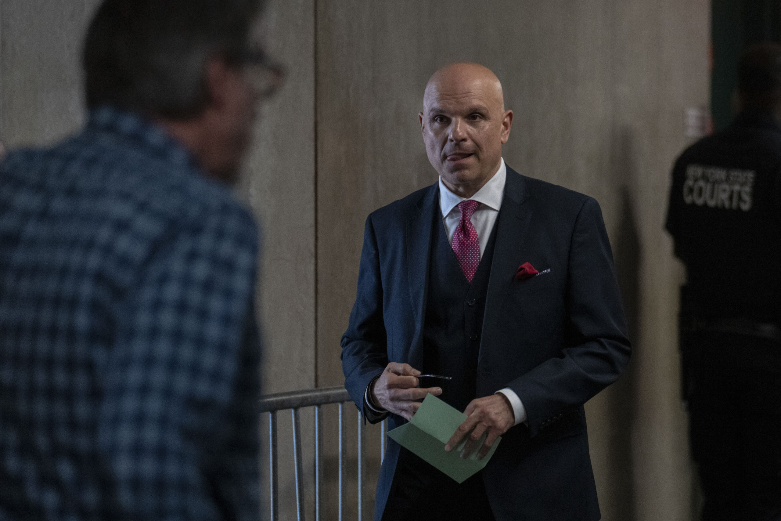 May 9, 2024; New York, NY, USA; Arthur Aidala, attorney for Harvey Weinstein, walks on the hallway at Manhattan criminal court. Former US President Donald Trump faces 34 felony counts of falsifying business records as part of an alleged scheme to silence claims of extramarital sexual encounters during his 2016 presidential campaign. Mandatory Credit: Jeenah Moon/Pool via USA TODAY NETWORK