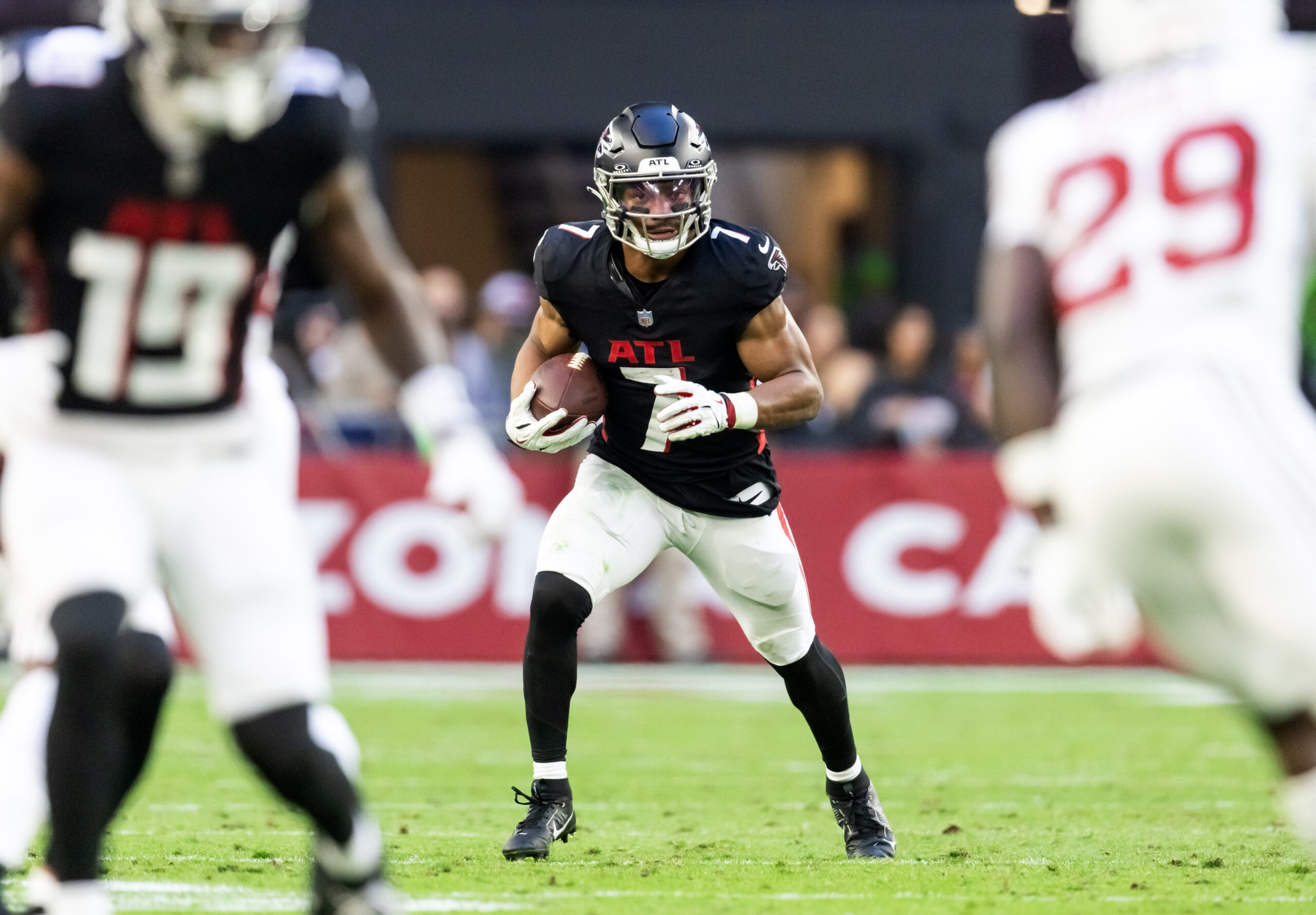 Dec 21, 2025; Glendale, Arizona, USA; Atlanta Falcons running back Bijan Robinson (7) against the Arizona Cardinals at State Farm Stadium. Mandatory Credit: Mark J. Rebilas-Imagn Images