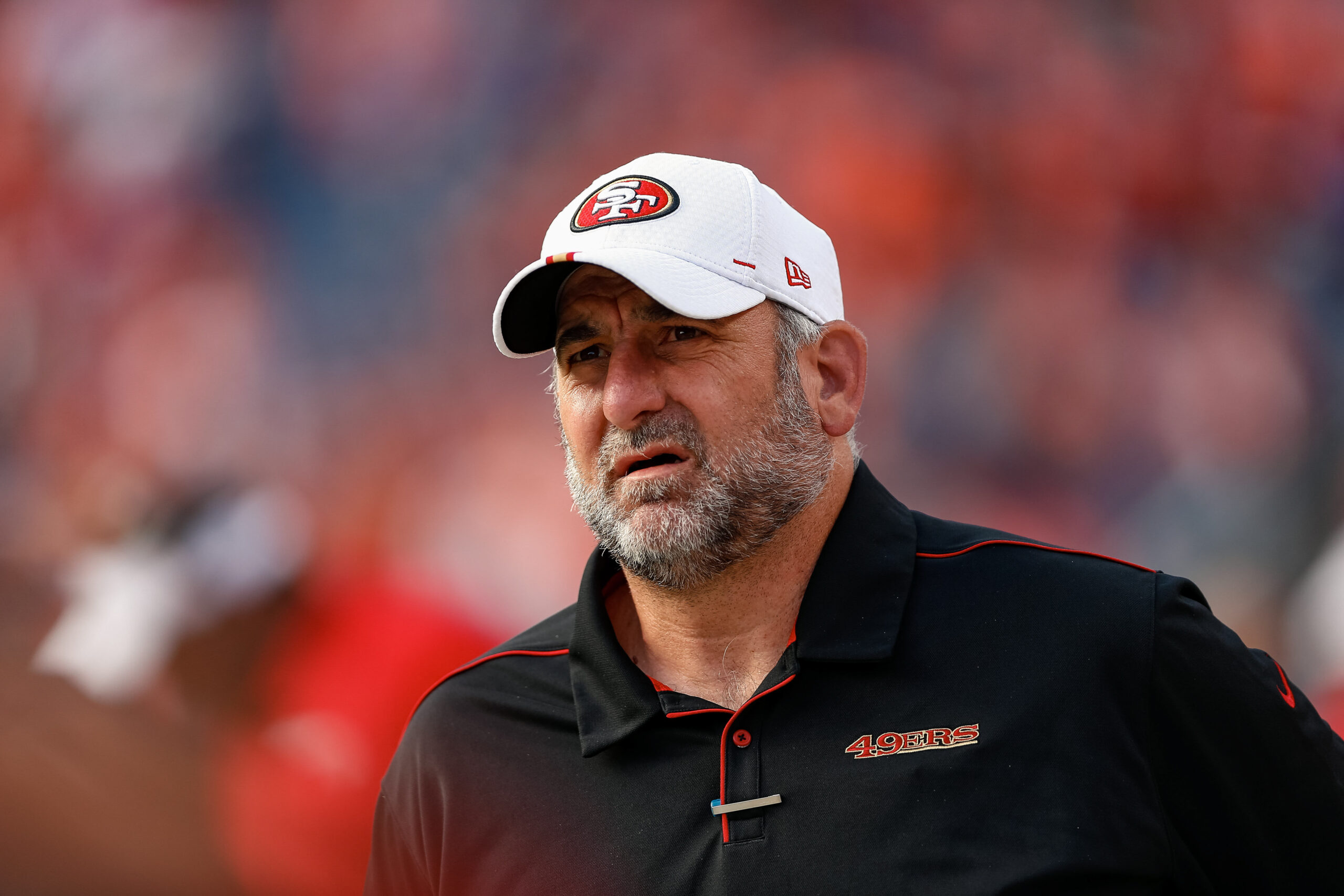 Aug 19, 2019; Denver, CO, USA; San Francisco 49ers offensive line coach John Benton before the game against the Denver Broncos at Broncos Stadium at Mile High. Mandatory Credit: Isaiah J. Downing-Imagn Images