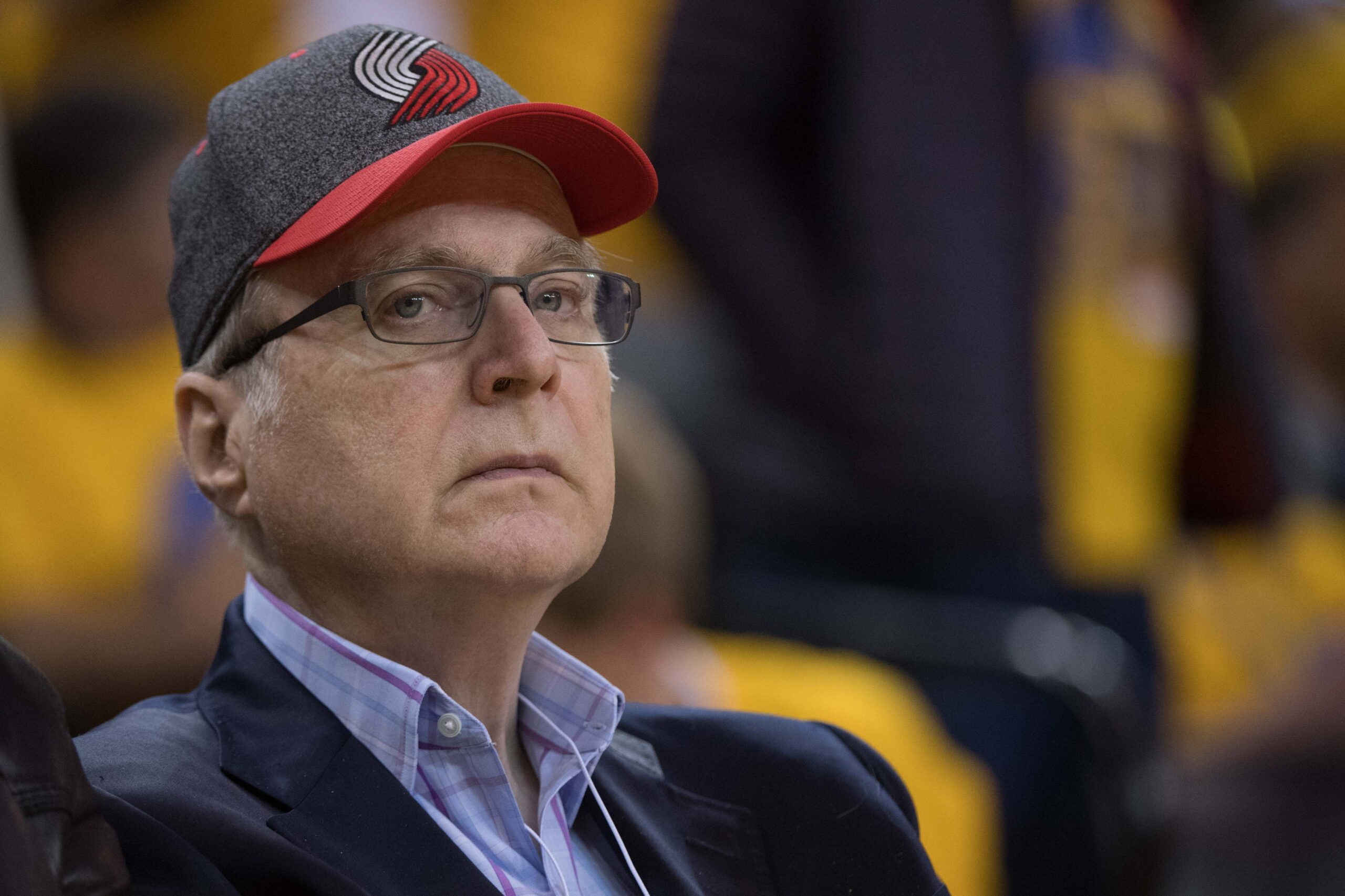 April 16, 2017; Oakland, CA, USA; Portland Trail Blazers owner Paul Allen during the second quarter in game one of the first round of the 2017 NBA Playoffs against the Golden State Warriors at Oracle Arena. The Warriors defeated the Trail Blazers 121-109. Mandatory Credit: Kyle Terada-Imagn Images