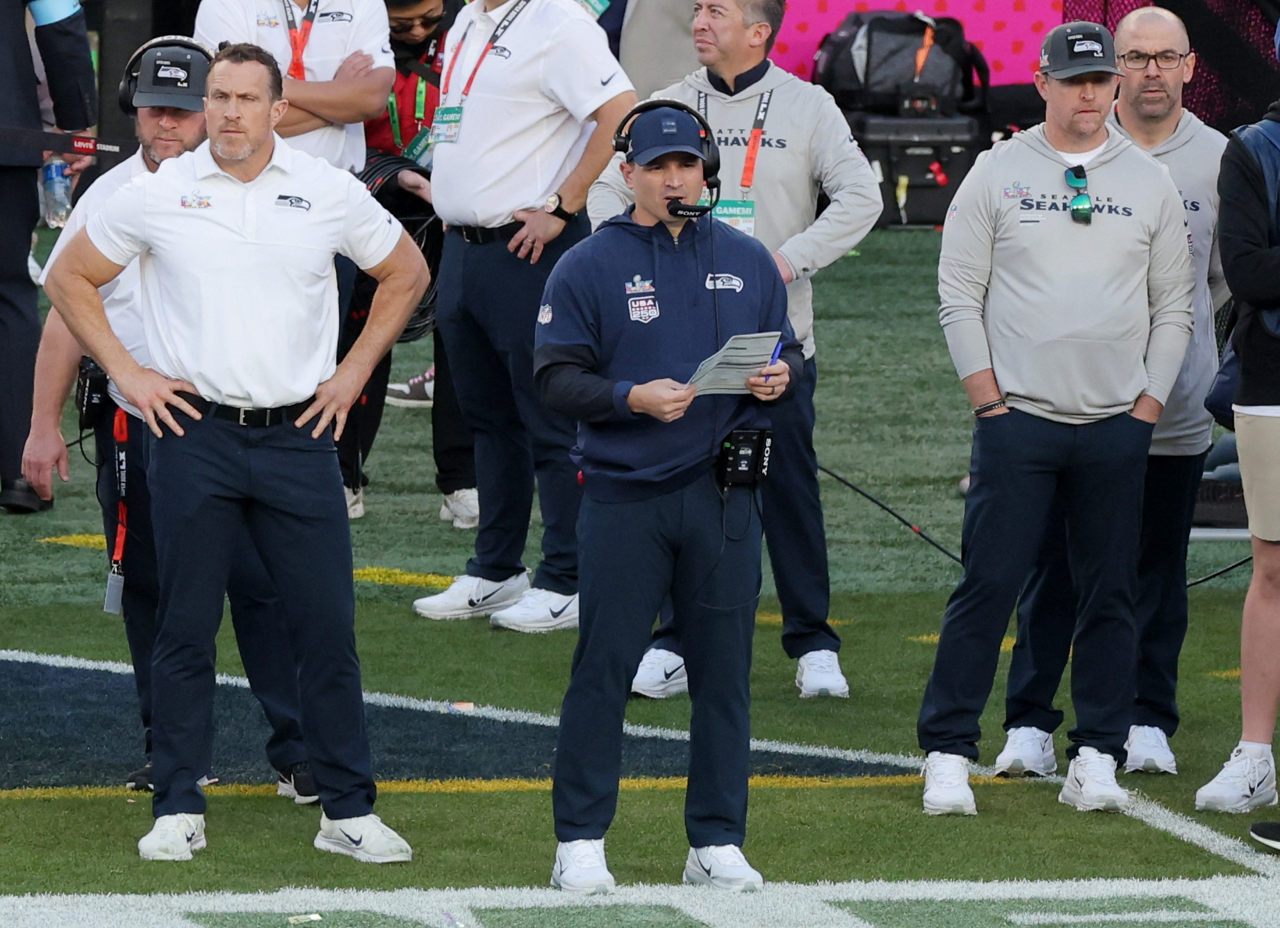 [US, Mexico & Canada customers only] Feb 8, 2026; Santa Clara, CA, USA; Seattle Seahawks head coach Mike MacDonald on the sideline against the New England Patriots during Super Bowl LX at Levi’s Stadium. Mandatory Credit: Carlos Barria/Reuters via Imagn Images