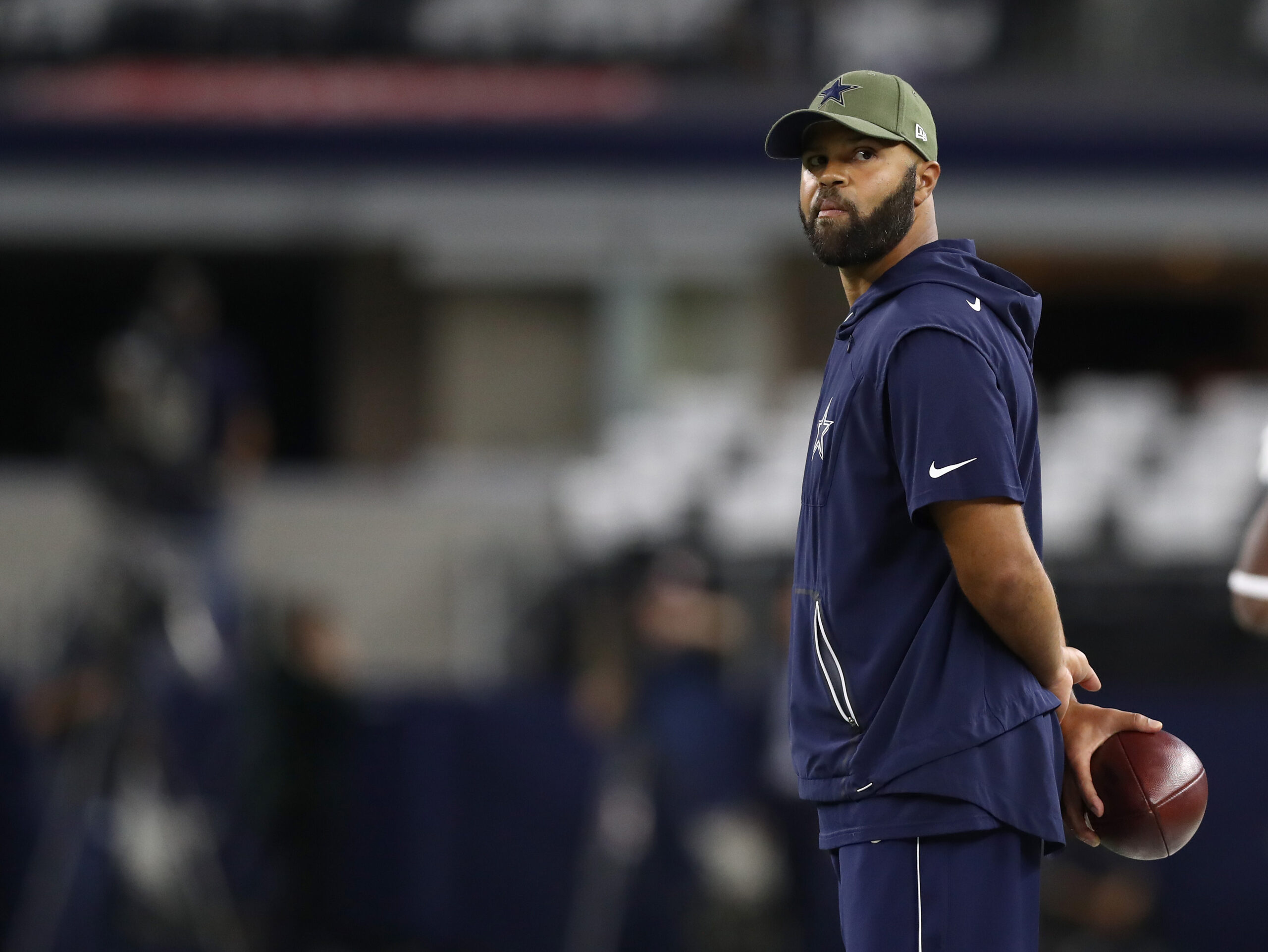 Nov 5, 2018; Arlington, TX, USA; Dallas Cowboys passing game coordinator Kris Richard on the field prior to the game against the Tennessee Titans at AT&T Stadium. Mandatory Credit: Matthew Emmons-Imagn Images