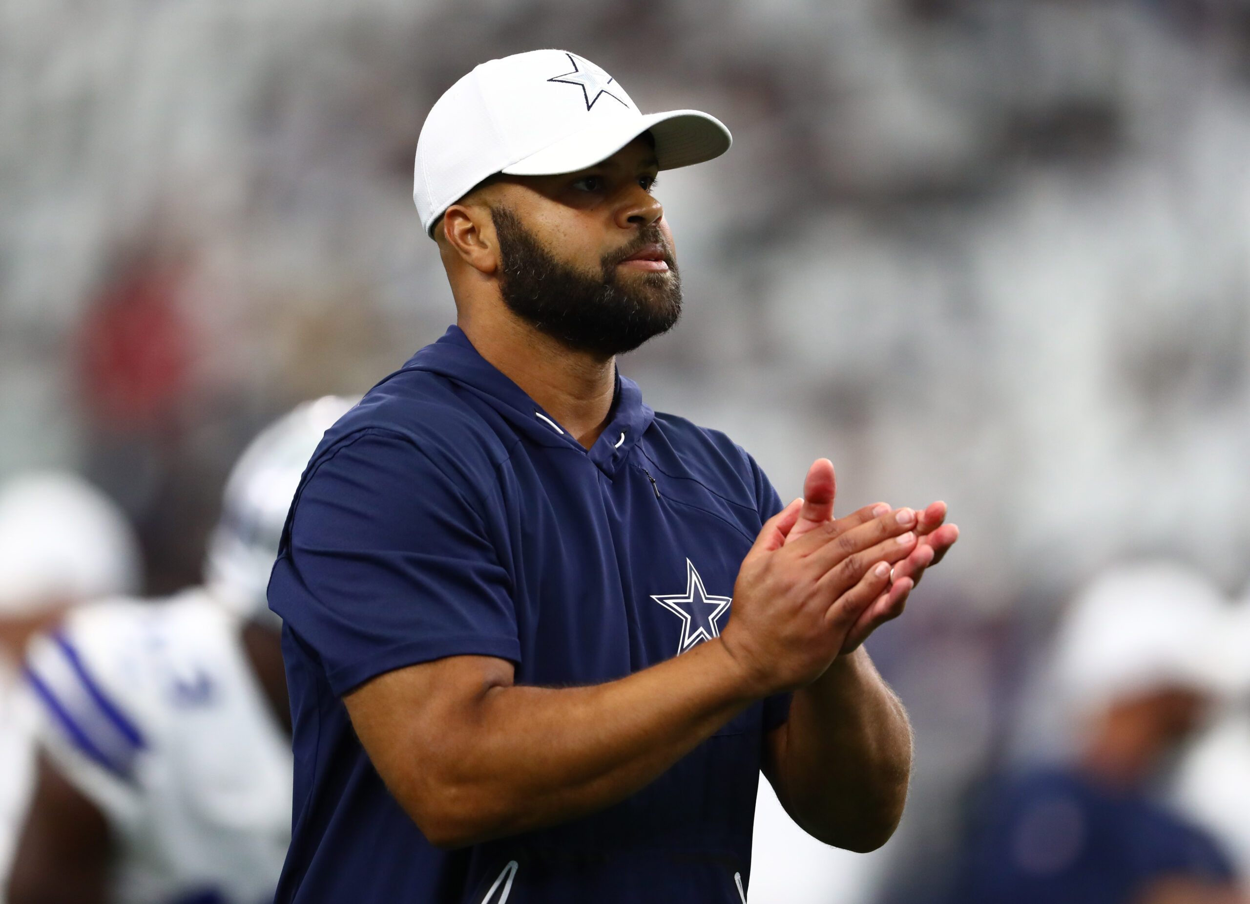 Sep 8, 2019; Arlington, TX, USA; Dallas Cowboys defensive backs coach Kris Richard prior to the game against the New York Giants at AT&T Stadium. Mandatory Credit: Matthew Emmons-Imagn Images