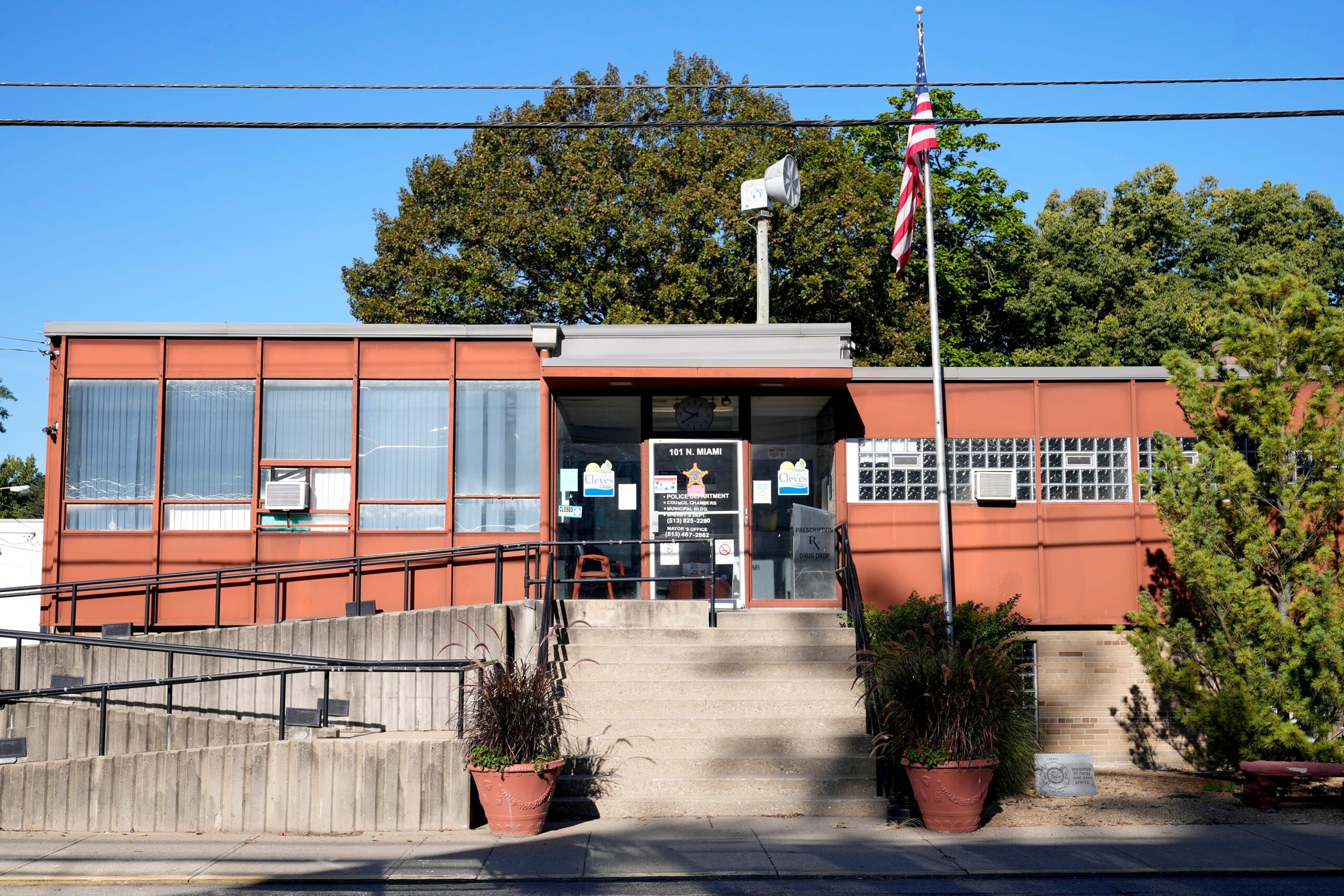 The Village of Cleves municipal building photographed Tuesday, Sept. 9, 2025, in Cleves, Ohio. The building once housed the Cleves Police Department, it was disbanded in 2020, now the Hamilton County Sheriff’s Department serves the small village.