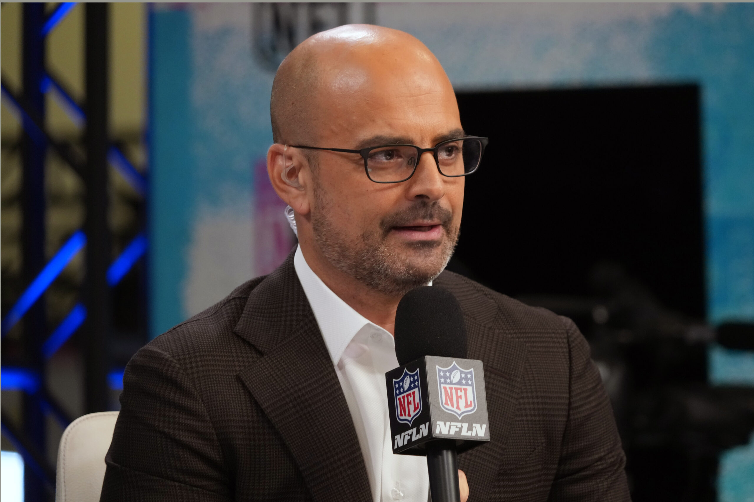 Feb 4, 2026; San Francisco, CA, USA; Mike Garafolo on the NFL Network set at the Super Bowl LX media center at the Moscone Center. Mandatory Credit: Kirby Lee-Imagn Images