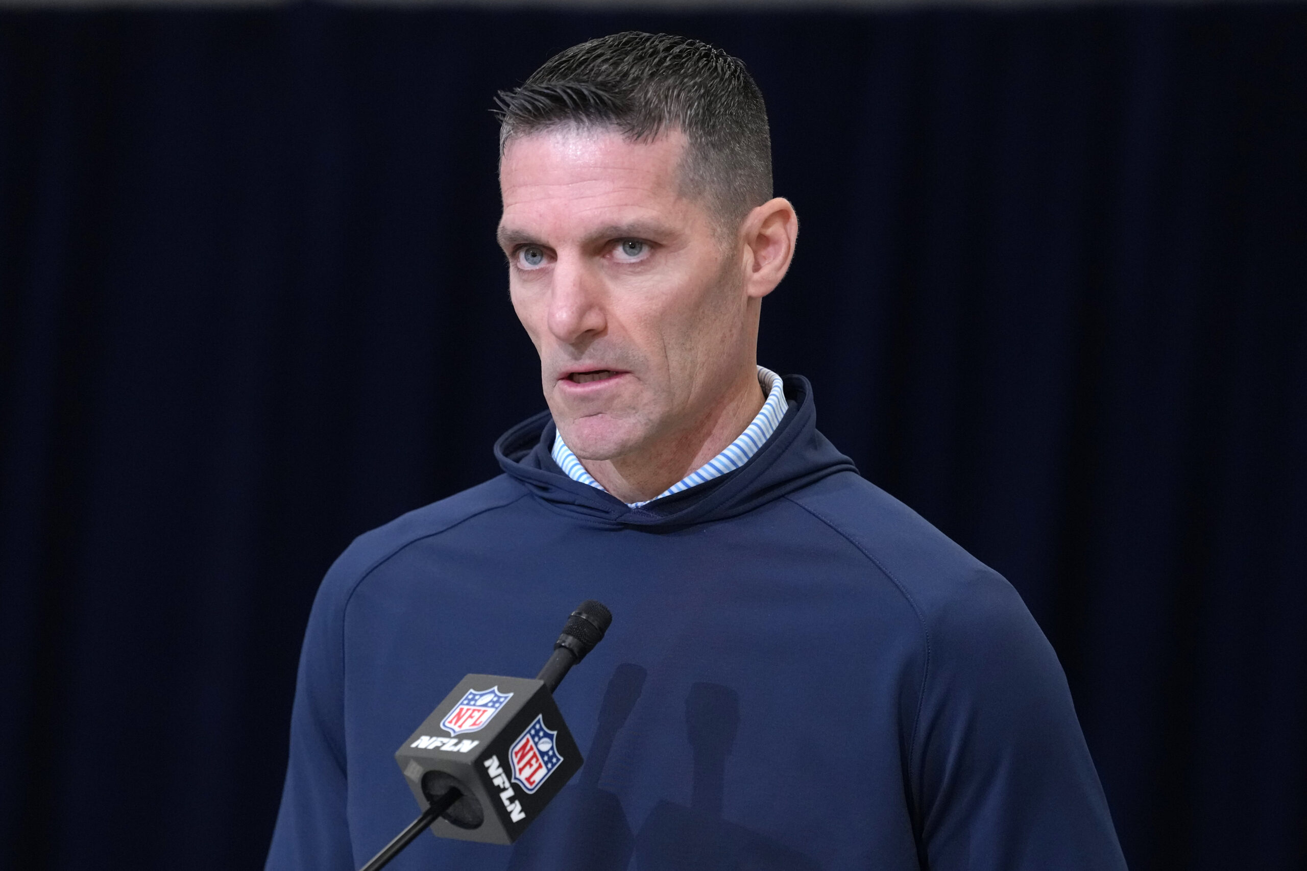 Feb 24, 2026; Indianapolis, IN, USA; Houston Texans general manager Nick Caserio speaks at the NFL Scouting Combine at the Indiana Convention Center. Mandatory Credit: Kirby Lee-Imagn Images