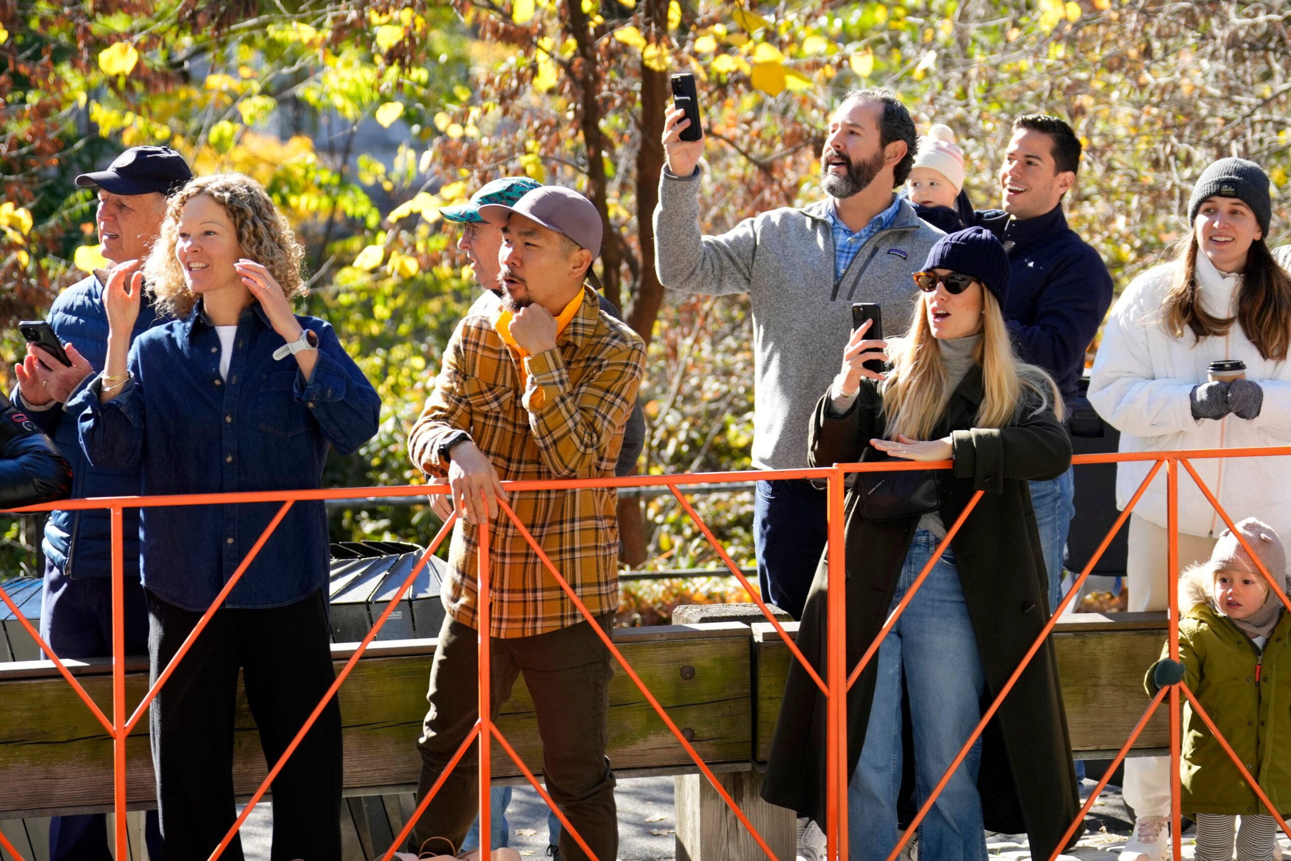 Nov 3, 2024; New York City, New York, US; Spectators cheer for runners of the New York City Marathon from Central Park. Mandatory Credit: Kevin R. Wexler-NorthJersey.com-Imagn Images