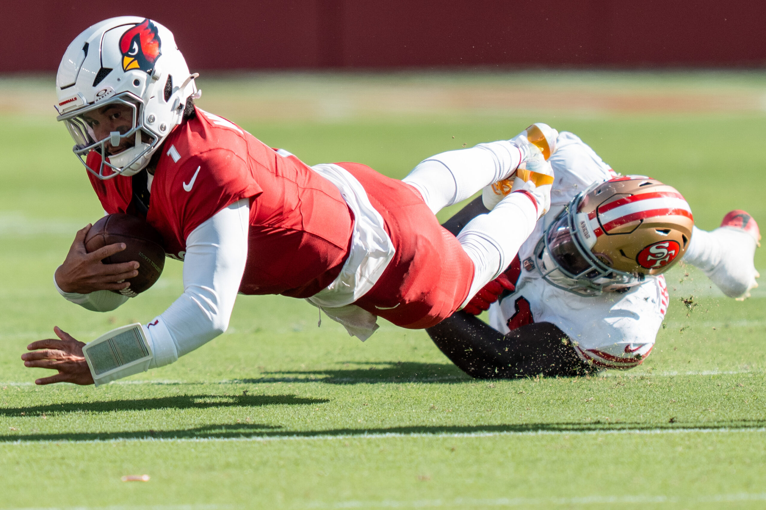 September 21, 2025; Santa Clara, California, USA; Arizona Cardinals quarterback Kyler Murray (1) during the fourth quarter against the San Francisco 49ers at Levi’s Stadium. Mandatory Credit: Kyle Terada-Imagn Images