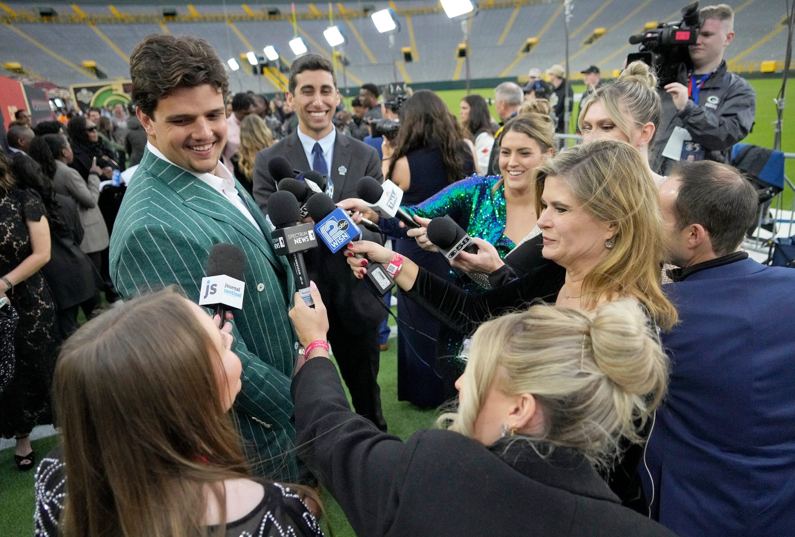 NFL draft prospect, Will Campbell of LSU, during the NFL Draft Red Carpet event at Lambeau Field in Green Bay on Thursday, April 24, 2025. Mandatory Credit: Mike De Sisti / Milwaukee Journal Sentinel-Imagn Images
